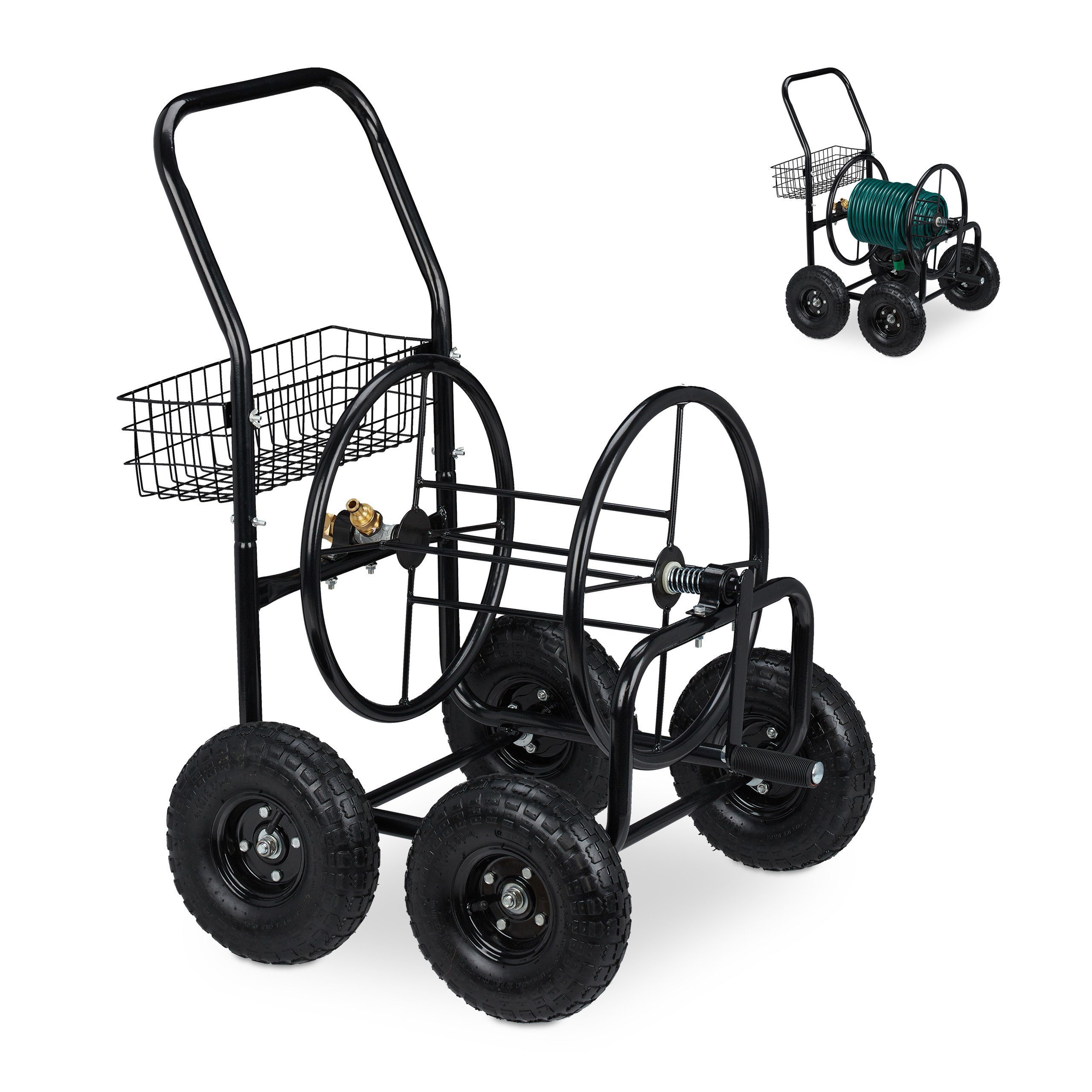 Mit diesem Schlauchwagen sind Sie bestens für die Gartenarbeit ausgerüstet. Wer einen großen Garten besitzt oder bei wem der Wasserhahn nicht in der Nähe der Beete ist, der wird für dieses Gartentool dankbar sein. Bis zu 75 Meter Schlauch passen auf die Schlauchtrommel, die manuell über eine Kurbel betrieben wird. Schieben Sie die Schlauchtrommel mithilfe der 4 Räder an den Ort, an dem gegossen werden soll. Bei Nichtgebrauch ist der Schlauch dank des Gartenschlauchwagens knickfrei verstaut.