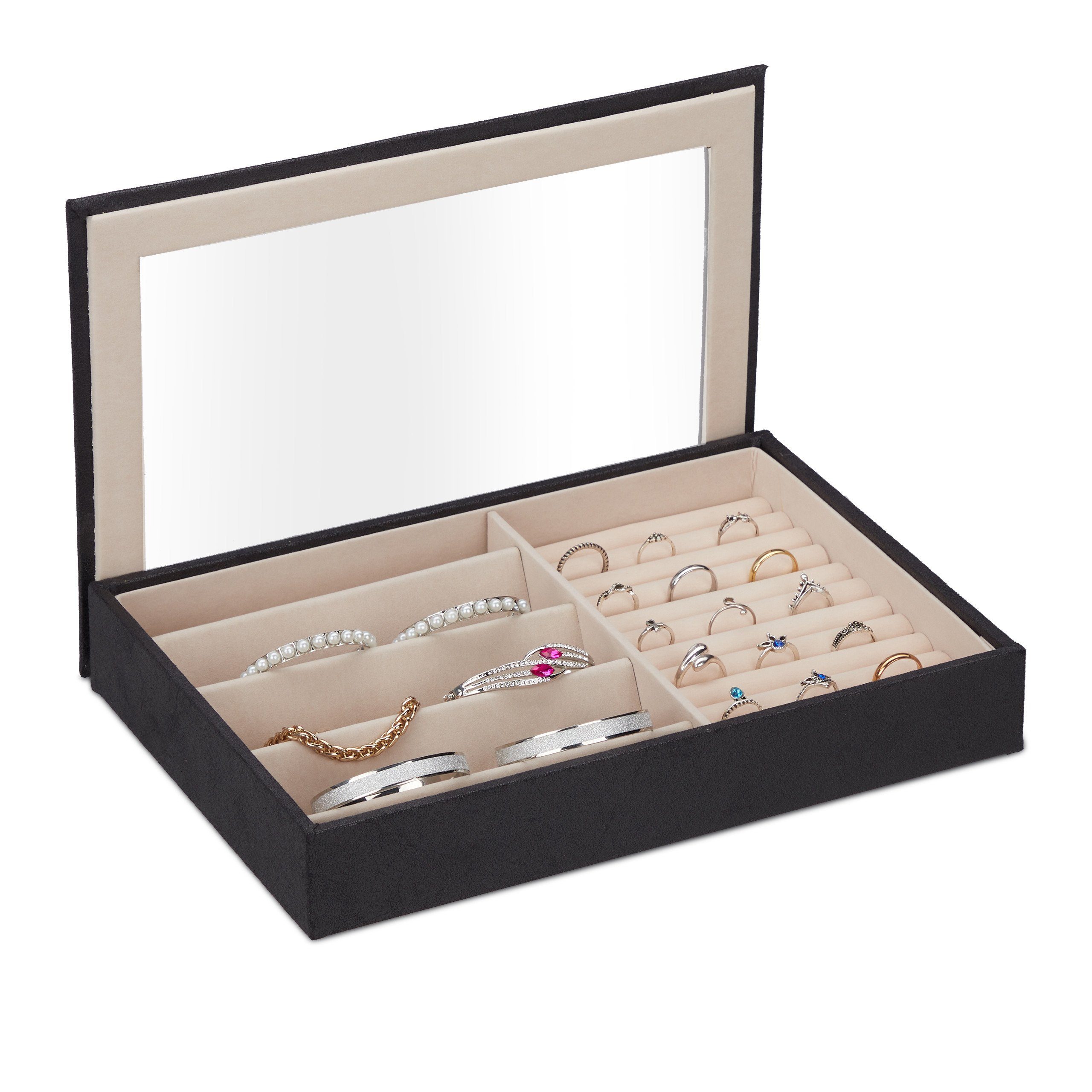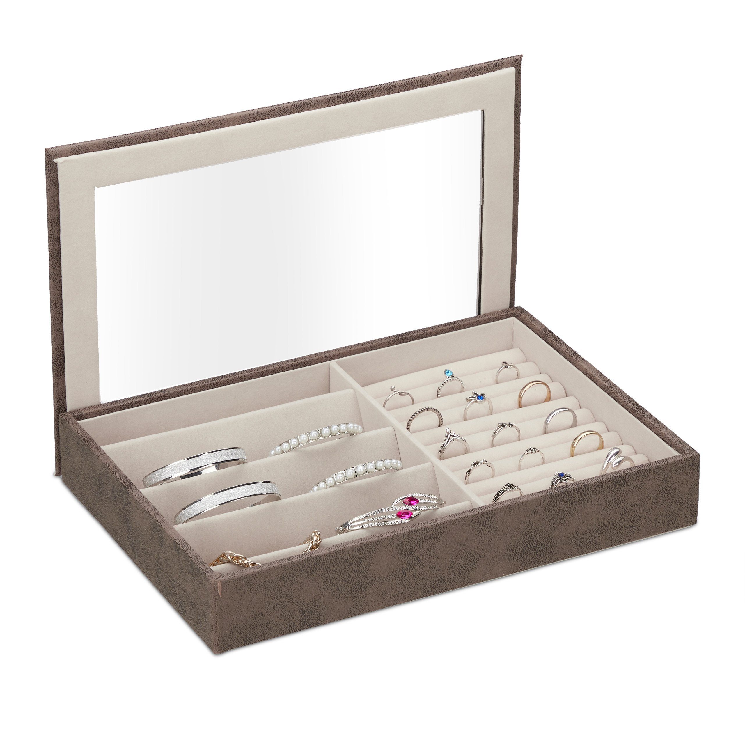 - Mit Ringhalter und schrägen Fächern für Ohrringe