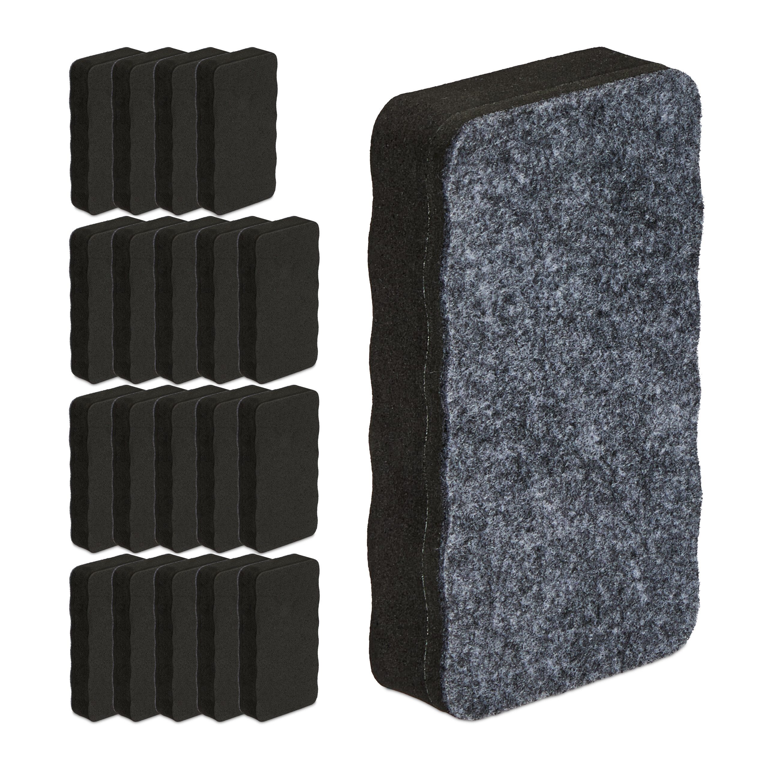 Mit diesen eckigen Schwämmen im 20er Set kannst du Dein Whiteboard effektiv von Stifteresten reinigen und wieder zum Strahlen bringen. Die weichen Schaumstoff Schwämme besitzen einen Magneten im Inneren und können somit platzsparend am Board befestigt und aufbewahrt werden. Die schwarzen Tafelwischer mit gewellten Kanten sind praktische Helfer für Tafeln und eignen sich ideal für die Schule, Büro, Uni oder den Alltag.