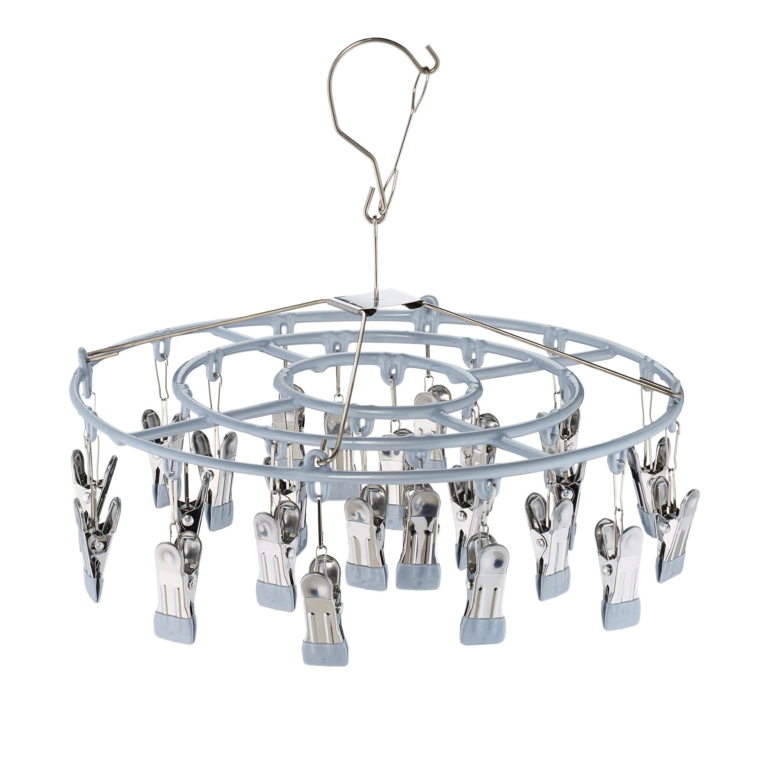 Socken nehmen in ihrer Vielzahl auf dem Wäscheständer oft wertvollen Platz für große Wäschestücke weg. Der Sockentrockner für bis zu 24 Paar Füßlinge löst dieses alltägliche Problem. Mit der Wäschekrake trocknen Sie Kleinteile wie Unterwäsche, Babysocken oder Stofftaschentücher platzsparend. Die Mini-Wäschespinne eignet sich auch für unterwegs. Dank Campingwäscheständer ist die Urlaubswäsche rasch aufgefrischt. Rutschfeste Wäscheklammern und verschließbarer Haken trotzen auch starkem Wind.
