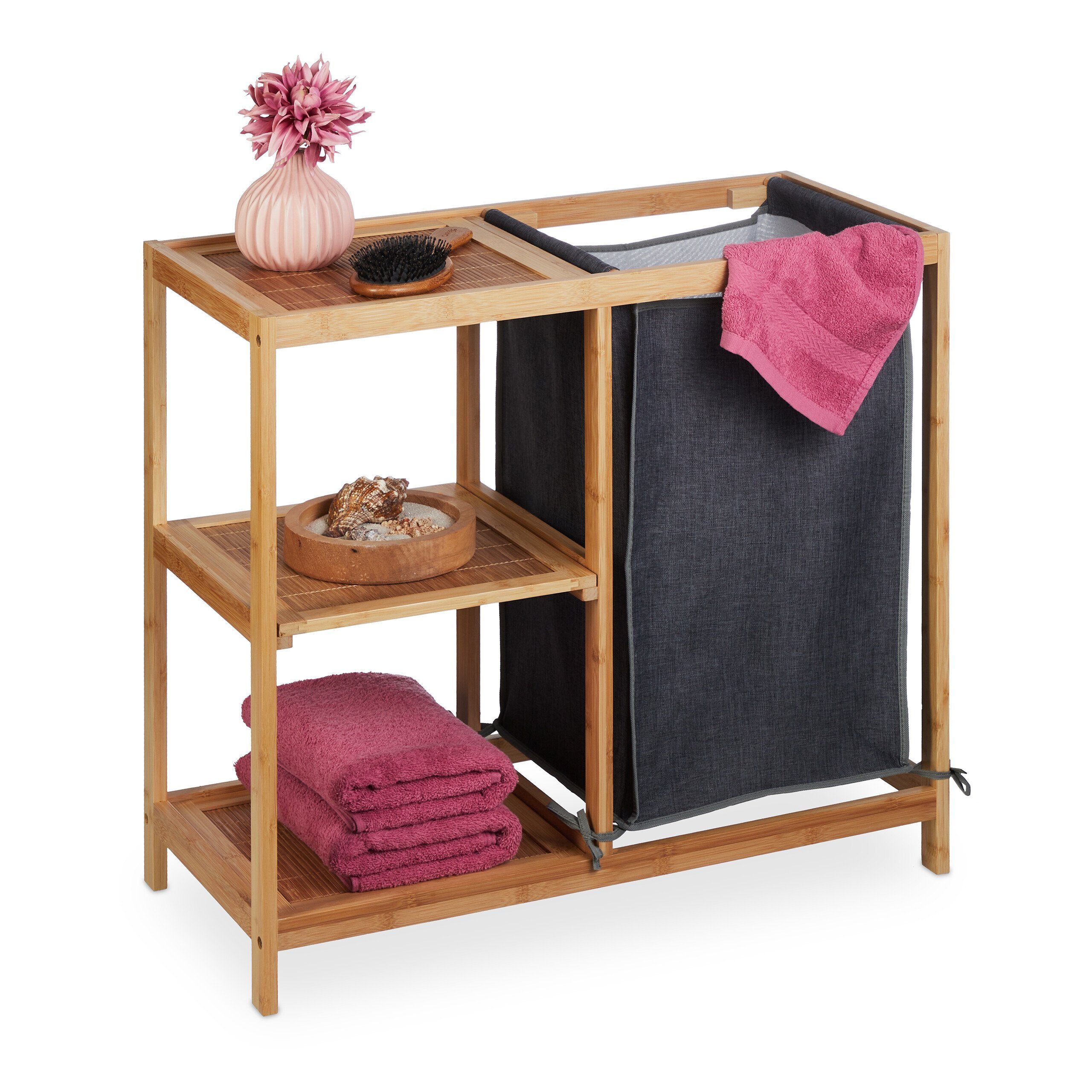 - Mit herausnehmbarem Wäschekorb aus grauem Stoff