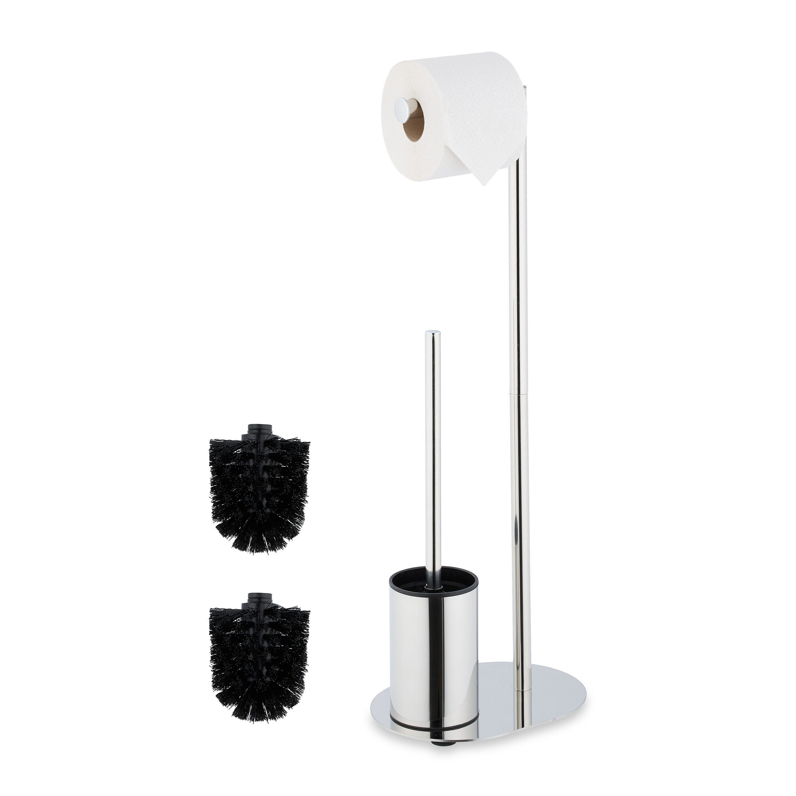 Stehender Klopapierhalter mit WC-Bürste - Praktische Kombination aus Papier- und Toilettenbürstenhalter - Hygienisch wechselbarer Bürstenkopf - Inkl. 2 Ersatzköpfen - Schwere Bodenplatte sorgt für einen sicheren Stand - Mit Schaumstoffschonern gegen Kratzer am Boden - Dekorativer Toilettenpapierständer aus robustem Metall - Freistehende Toilettenbürstengarnitur für Bad oder Gäste-WC