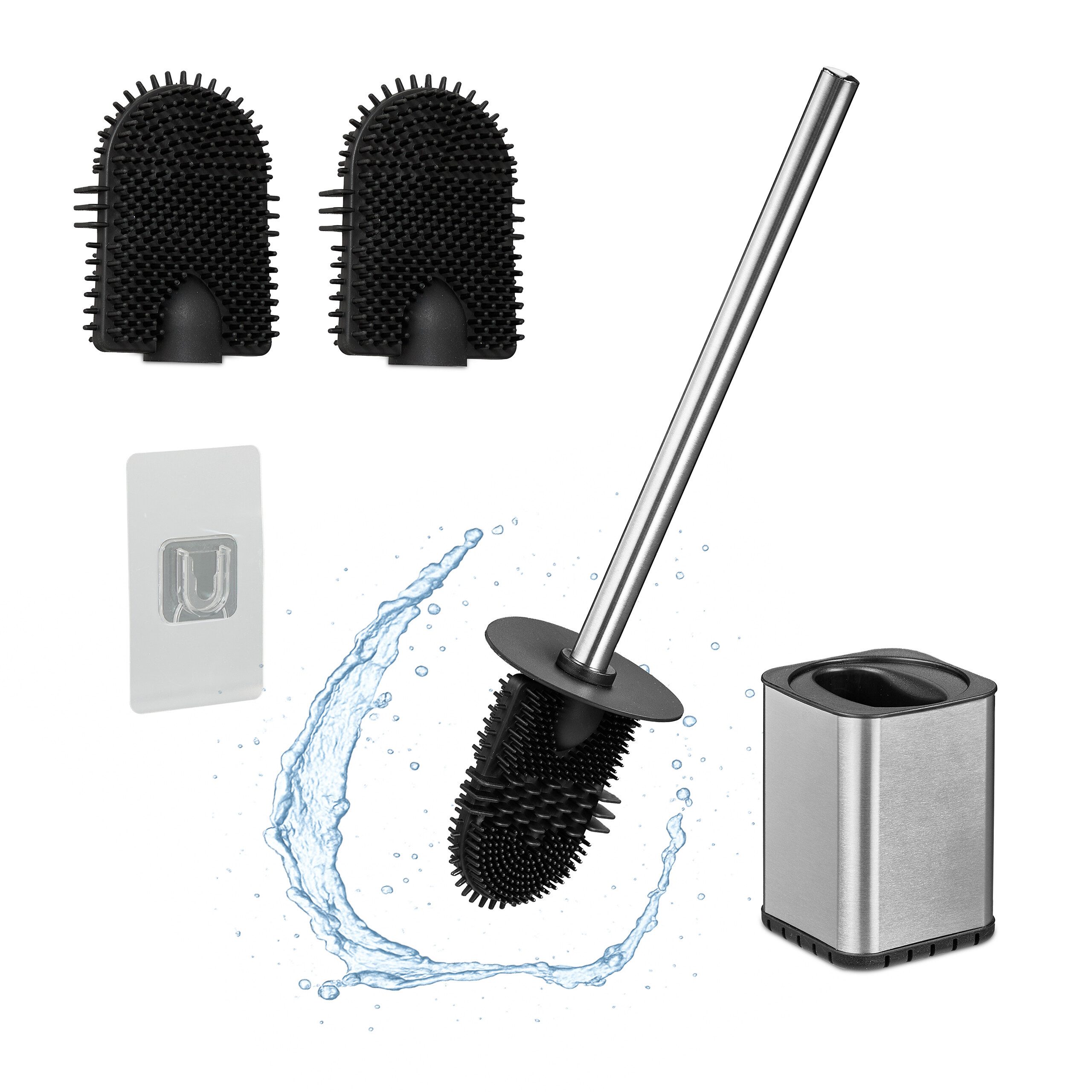 Flexible Toilettenrandbürste zur Wandmontage - Moderne WC-Garnitur für das Badezimmer und Gäste-WC - Inklusive Klebepad zur einfachen Wandmontage ohne Bohren - Schmaler, biegsamer Bürstenkopf zur effektiven Randreinigung - Antibakterielle Klobürste dank glatten, schmutzabweisenden Borsten - Weiche Borsten sind schonend zur Keramik und verhindern Kratzer - Spritzschutz und 2 Wechselköpfe für hygienische Nutzung - Platzsparende Montage an der Wand hält den Boden frei - Toilettenbürstenhalter mit elegant satinierter Oberfläche - Gefertigt aus robustem, langlebigem Edelstahl und Kunststoff