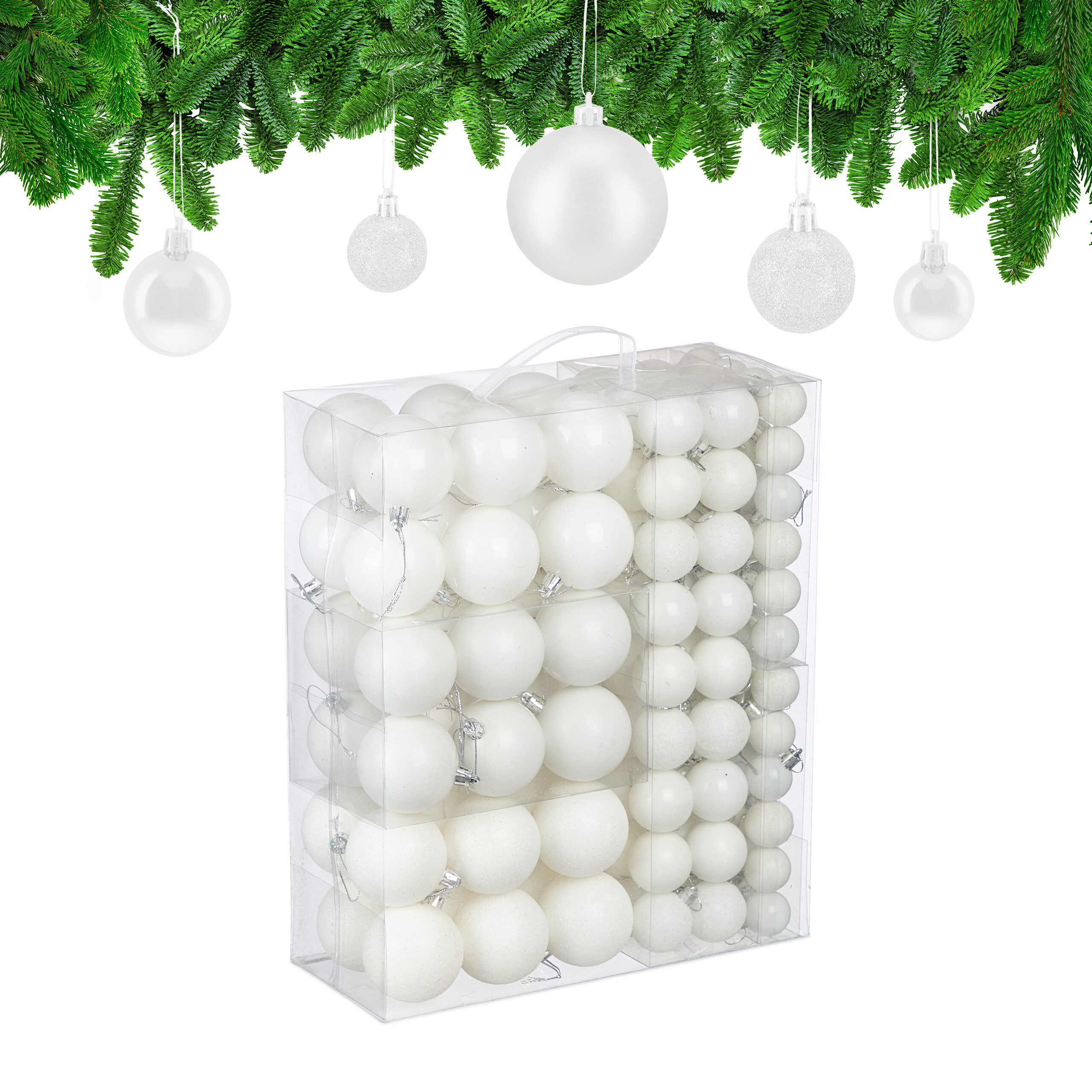 Christbaumschmuck im 138er Set - Weihnachtsbaum mit den Tannenkugeln festlich schmücken - Christbaumdeko mit Bändchen zum einfachen Aufhängen - Baumkugeln in glitzerndem, mattem und glänzendem Design - Glänzende Kugeln reflektieren das Licht für behaglichen Glanz - Langlebiger Baumschmuck aus bruchsicherem Kunststoff - Dekorative Weihnachtsbaumdeko für ein besinnliches Fest - Inklusive praktischer Aufbewahrungsbox zum Verstauen
