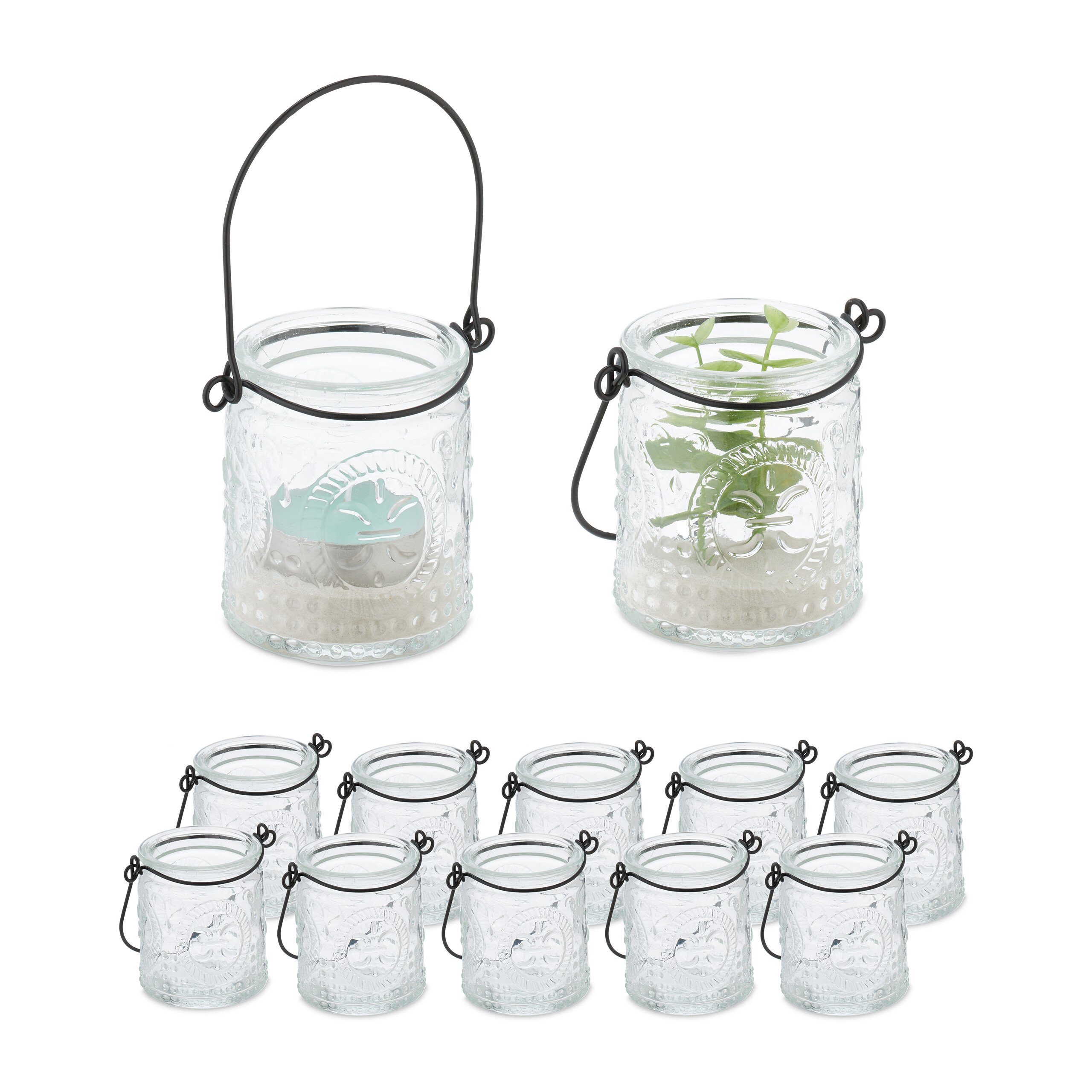 Mit diesen Windlichtern zauberst Du im Handumdrehen eine gemütliche Atmosphäre bei Deiner Gartenparty oder einem relaxten Sommerabend auf dem Balkon. Platziere die Teelichtgläser im praktischen 12er Set einfach auf dem Tisch oder hänge sie dekorativ an den Henkeln auf. Auch als Tischdekoration bei Geburtstagen oder Hochzeiten machen die Teelichthalter eine gute Figur. Durch das dekorative Design und den Materialmix aus Glas und Metall sind die Kerzengläser außen und innen ein Blickfang.