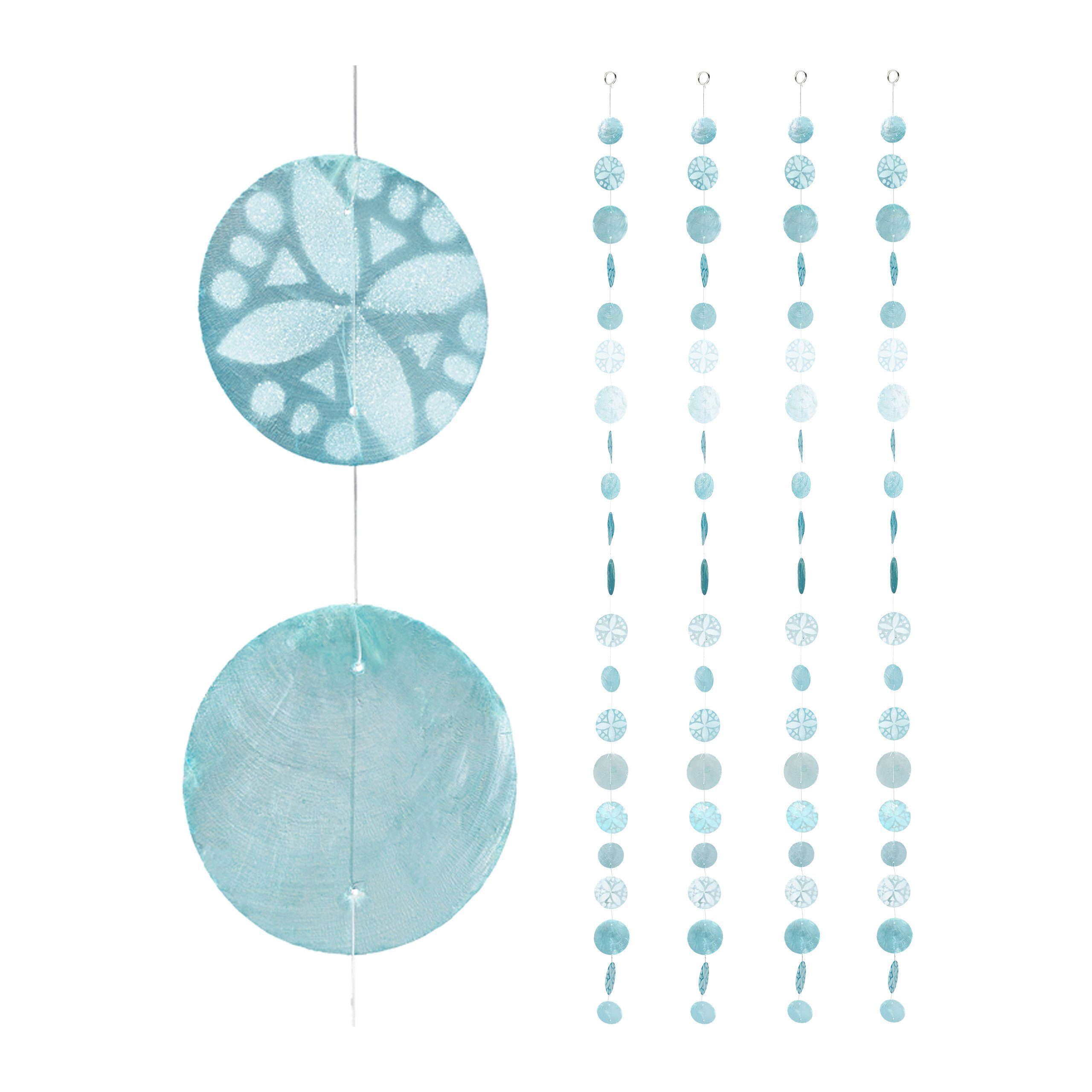 Kahle Wände und Räume sind einfach nicht gemütlich. Wenn Sie Farbakzente in Ihre Vier Wände bringen wollen, sollten Sie das Muschelgirlanden Set in Ihrer Wohnung aufhängen. Ob am Fenster, der Wand als Muschelvorhang vor der Balkontür oder freihängend an der Decke - die Capiz Ketten verzaubern jung und alt. Mit dem Metallhaken schnell aufgehangen, kommen Sie auch auf Ihrem Balkon oder im Garten prima zur Geltung. Nah beieinander erklingen die Capiz Hänger wie ein Klangspiel im Wind.