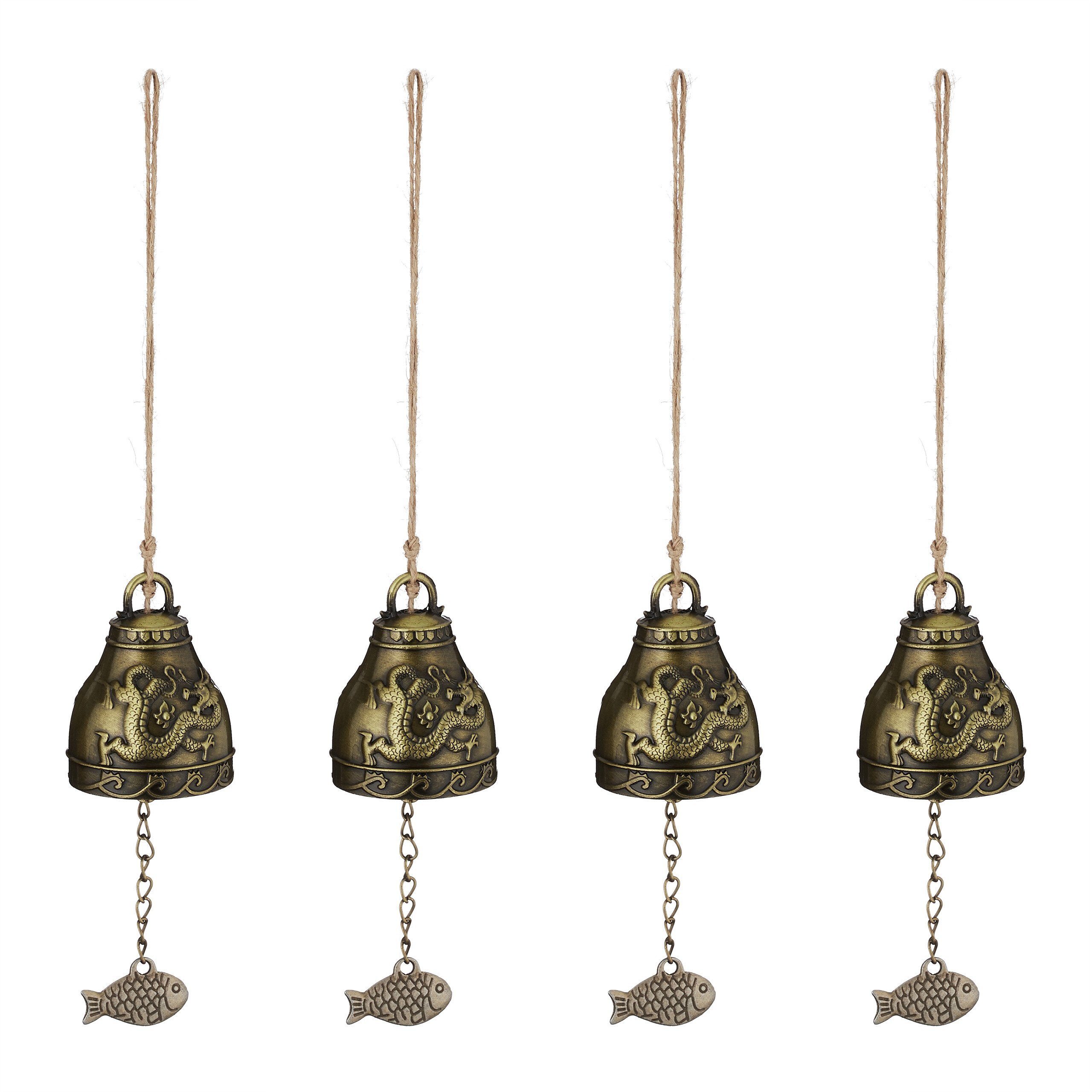 Feng Shui Windspiel aus Glocken - Glocken erzeugen bezaubernde, entspannende Klänge - Ideal für Balkon und Terrasse oder als Baumhänger im Garten - Auch als asiatische Deko für den Innenbereich geeignet - Glücksbringer Phönix, Drache und Fisch sorgen für Asia-Flair - Klangspiele lassen sich einfach über Schlaufe aufhängen - Mit Kette beschwerter Klöppel für Klänge auch bei leichtem Wind