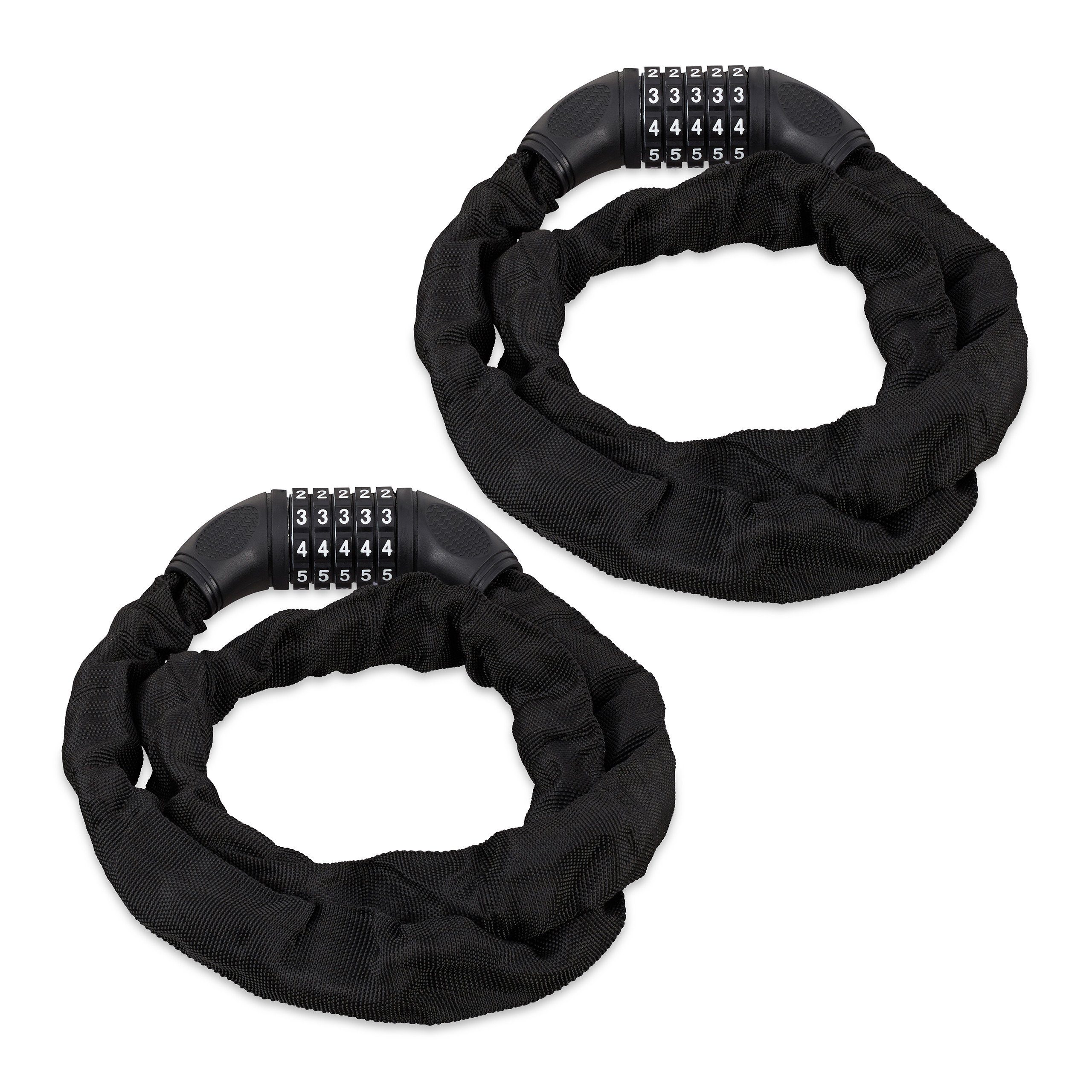 relaxdays Zahlenkettenschloss 2 x Zahlenschloss Fahrrad schwarz