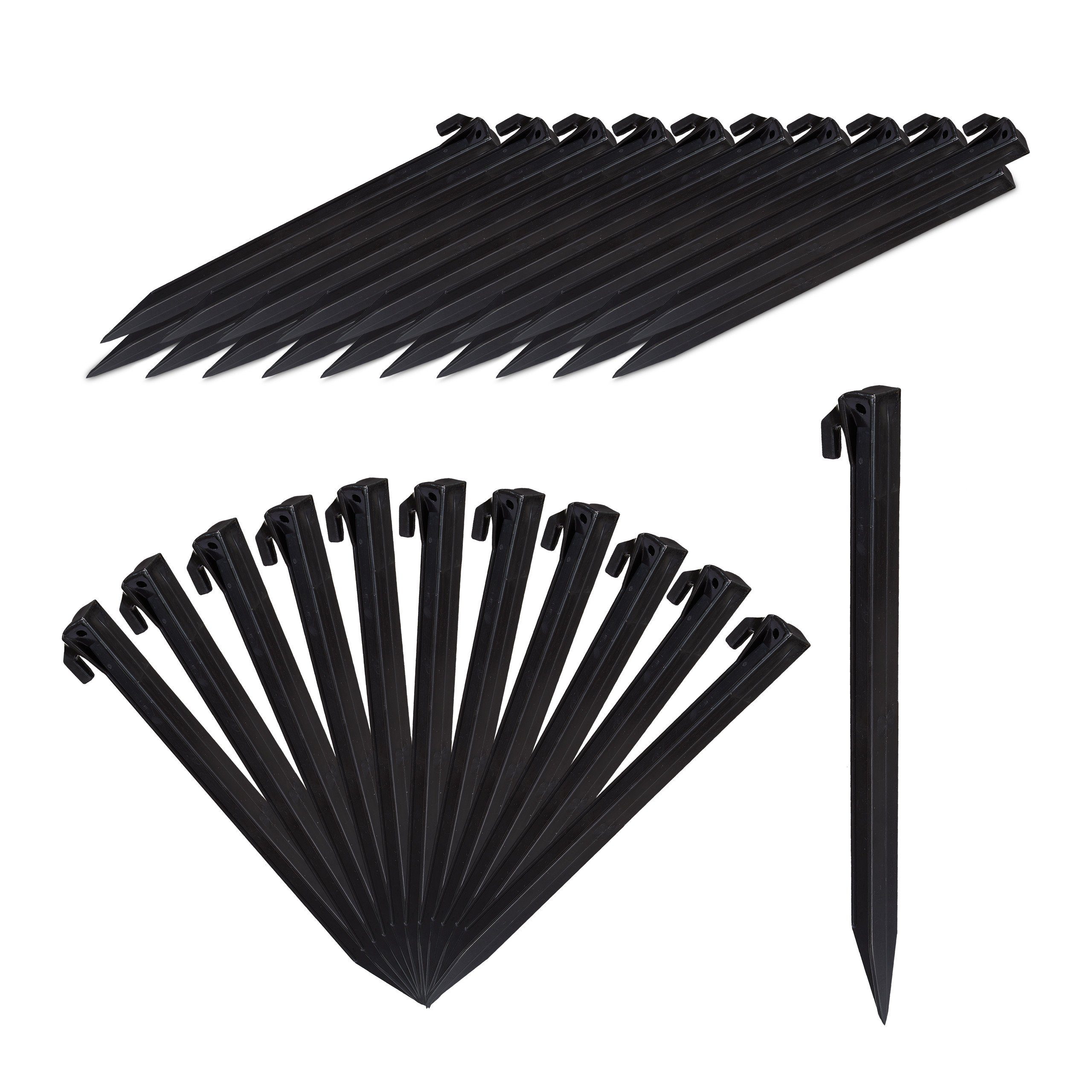 Wenn Sie beim Zelten auf weichen und sandigen Böden Wert auf eine zuverlässige Bodenverankerung legen, sollten Sie zu den Heringen im 64er Set greifen. Die Bodenheringe aus leichtem Kunststoff sorgen mit Ihrem langen Spieß auch bei windigem Wetter für festen Halt. Sie eignen sich besonders für die Verankerung von Zelten, Tarps, Strandmuscheln und mehr. Die Ösen erleichtern dabei das Abspannen der Seile und dank des spitz zulaufenden Endes dringen die Bodenanker mit Leichtigkeit in den Boden.