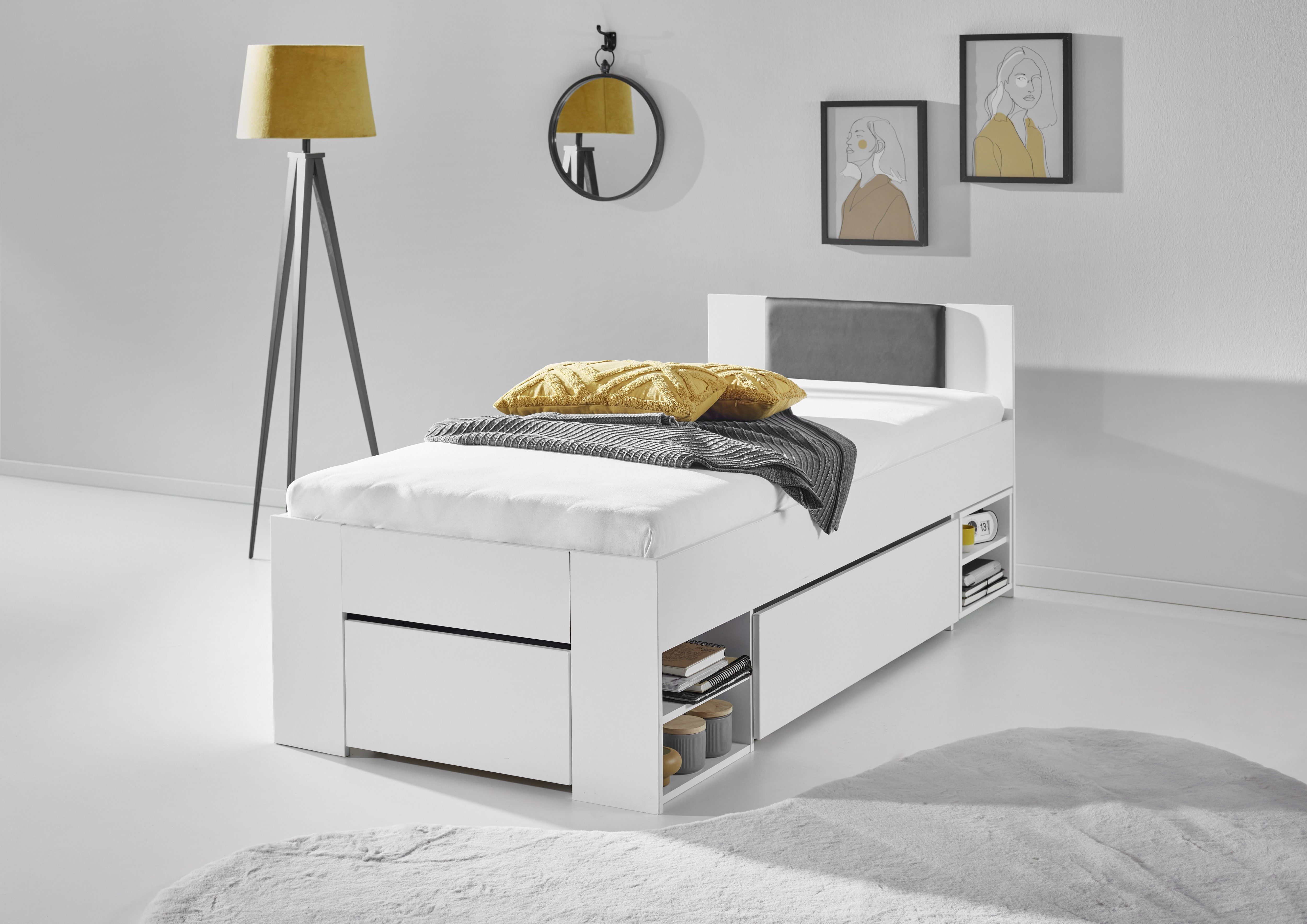 Bequemer Rückzugsort, der Ordnung schafft — das Stauraumbett »Stefan mit großen Schubladen u. Nako auf Rollen« von Relita.