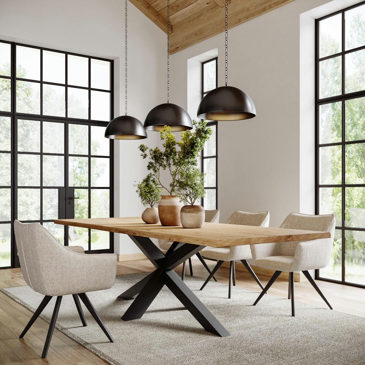 Das schwarze Metallgestell setzt einen stilvollen Kontrast zur warmen Holzoberfläche und sorgt für die nötige Stabilität. Mit großzügigen Abmessungen von 220 x 100 cm bietet der Tisch viel Platz für gemütliche Familienessen oder gesellige Abende mit Freunden. Der Otis Baumkantentisch ist ein ansehnlicher Blickfang in jedem Raum.