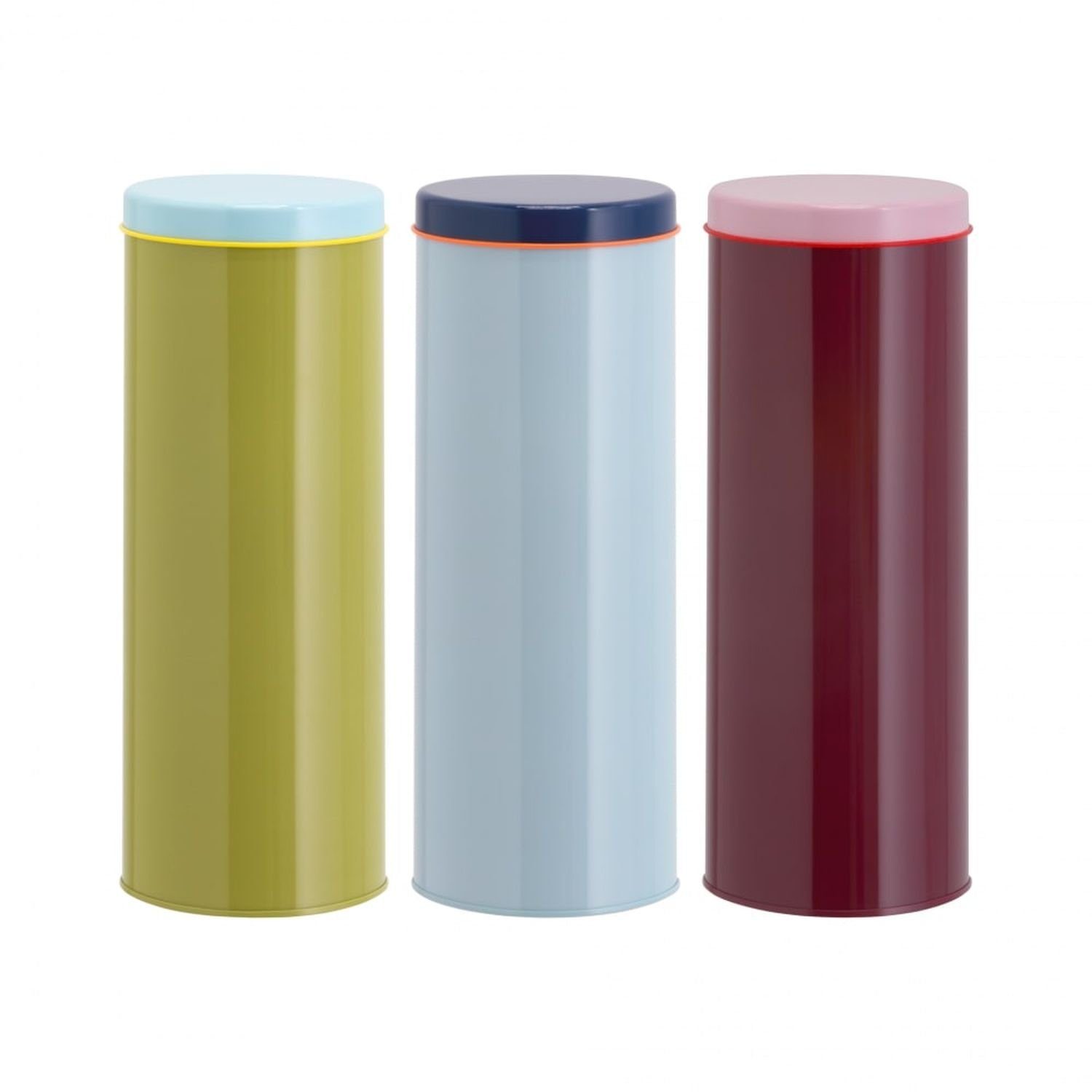 Das Dosenset Loni von Remember ist nicht nur äußerst platzsparend, sondern auch besonders dekorativ. Drei längliche Dosen aus farbigem Weißblech bewahren Kleinigkeiten aller Art sicher auf. Neben Spaghetti können sie auch Reis, Kaffee oder Mehl sicher verwahren. Die Dosen haben einen Durchmesser von 10 cm, sind 27,4 cm hoch und sollten nur von Hand gereinigt werden. Sie haben jeweils ein Volumen von zwei Litern.