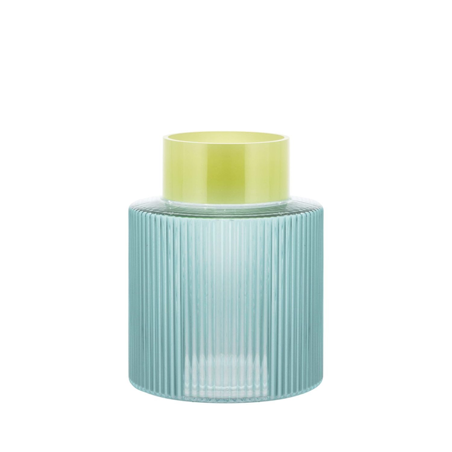 Die Glasvase Groove sorgt mit modern geriffeltem Glas und einer frischen Farbkombination für einen farbenfrohen Akzent in Küche oder Esszimmer. Je nach Geschmack kann sie mit einem bunten Blumenstrauß, einer einzelnen Blüte oder Zweigen dekoriert werden, so wird die Glasvase zum ständigen Deko-Begleiter. In der Размер S ist die Vase Groove 17,8 cm hoch und hat einen Durchmesser von 14,5 cm. Die Vasenöffnung hat einen Durchmesser von 9,3 cm.