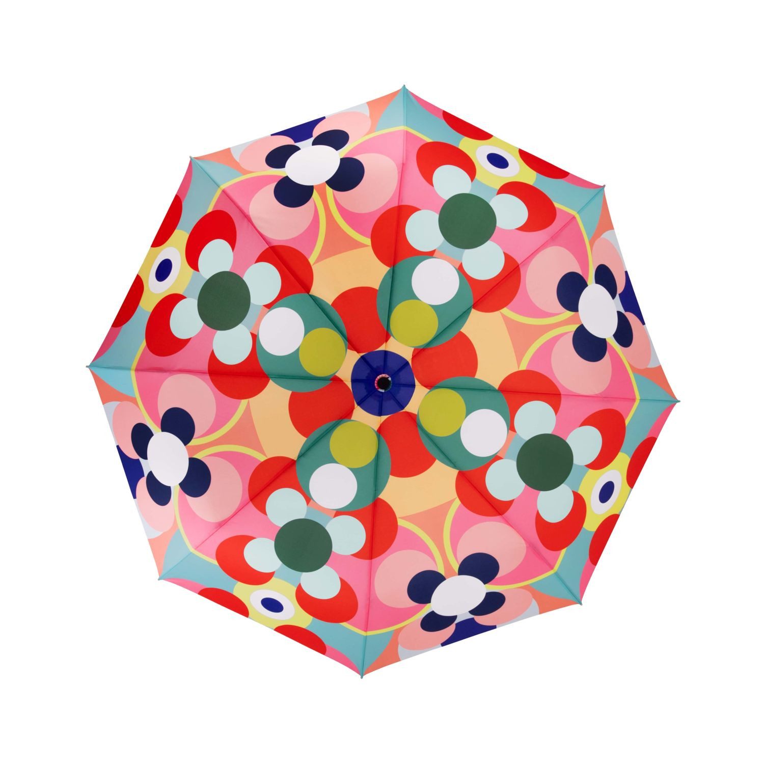 Der handliche Taschenschirm mit dem farbenfrohen Muster Sushi passt in jede Tasche und schützt zuverlässig vor Regengüssen und anderem Schauerwetter. Sobald die Sonne wieder scheint, reicht ein Knopfdruck aus und der Schirm verschwindet in seiner passenden Schutzhülle. Mit der Schlaufe aus Gummi lässt er sich auch am Handgelenk tragen und ist so immer schnell zur Hand. Der Taschenschirm Sushi ist im geschlossenen Zustand nur 29 cm lang, geöffnet verlängert er sich auf 58 cm und hat dann einen Durchmesser von einem Meter. Er besteht aus Metallverstrebungen und Schirmseide und wiegt nur leichte 395 Gramm.