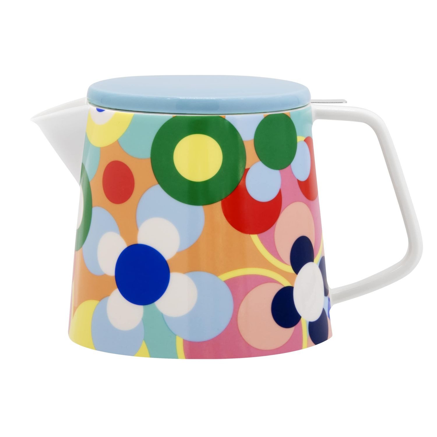 Schlechte Laune am Morgen vertreibt die farbenfrohe Teekanne mit dem Muster Sushi und begleitet mit fröhlichem Blumen-Motiv durch den Tag. Die Kanne besteht aus hochwertigem Knochenporzellan und ist sowohl spülmaschinen- als auch mikrowellengeeignet. So macht sie auch dem Schreibtisch, in der Küche und im Büro eine gute Figur. Zudem ist sie mit einem Siebeinsatz aus Edelstahl ausgestattet und eignet sich so auch für lose Teeblätter. Die Teekanne wird in einer hübschen Geschenkverpackung geliefert, separat ist auch eine passende Müslischale und ein Henkelbecher erhältlich. Die Teekanne Sushi ist 14 cm hoch, hat einen Durchmesser von 14,6 cm und fasst ein Volumen von 1200 ml.