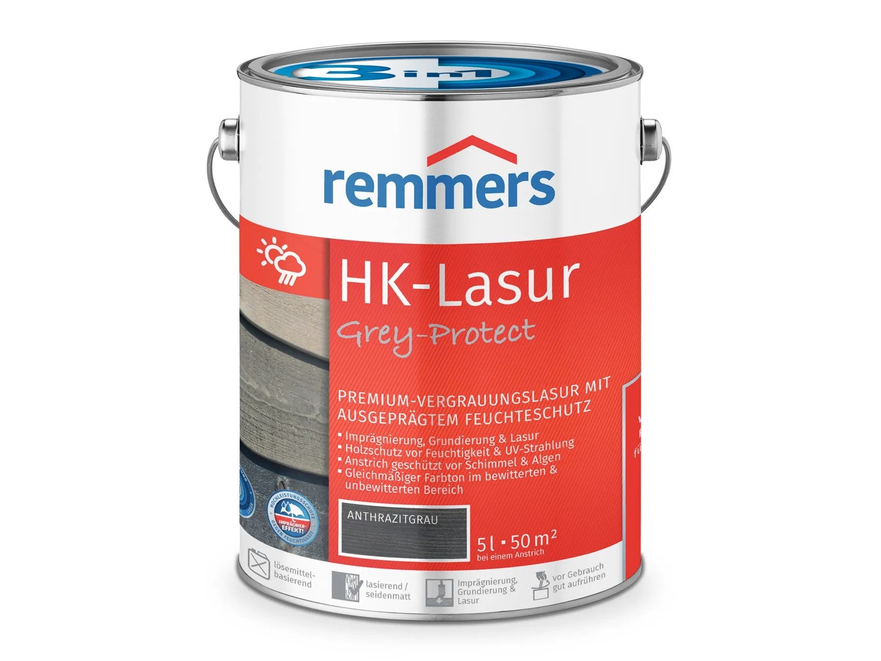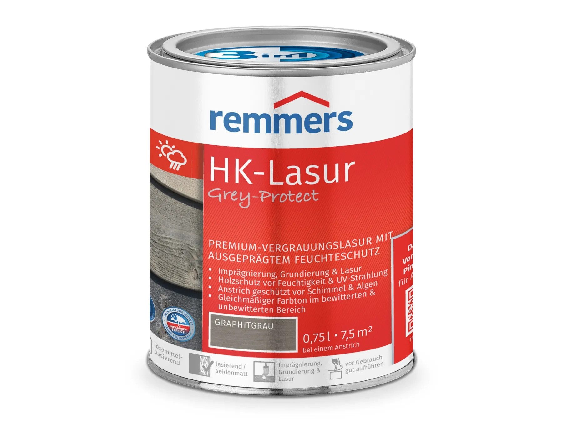 Dekorative, lösemittelbasierte Premium-Vergrauungslasurfür außen.