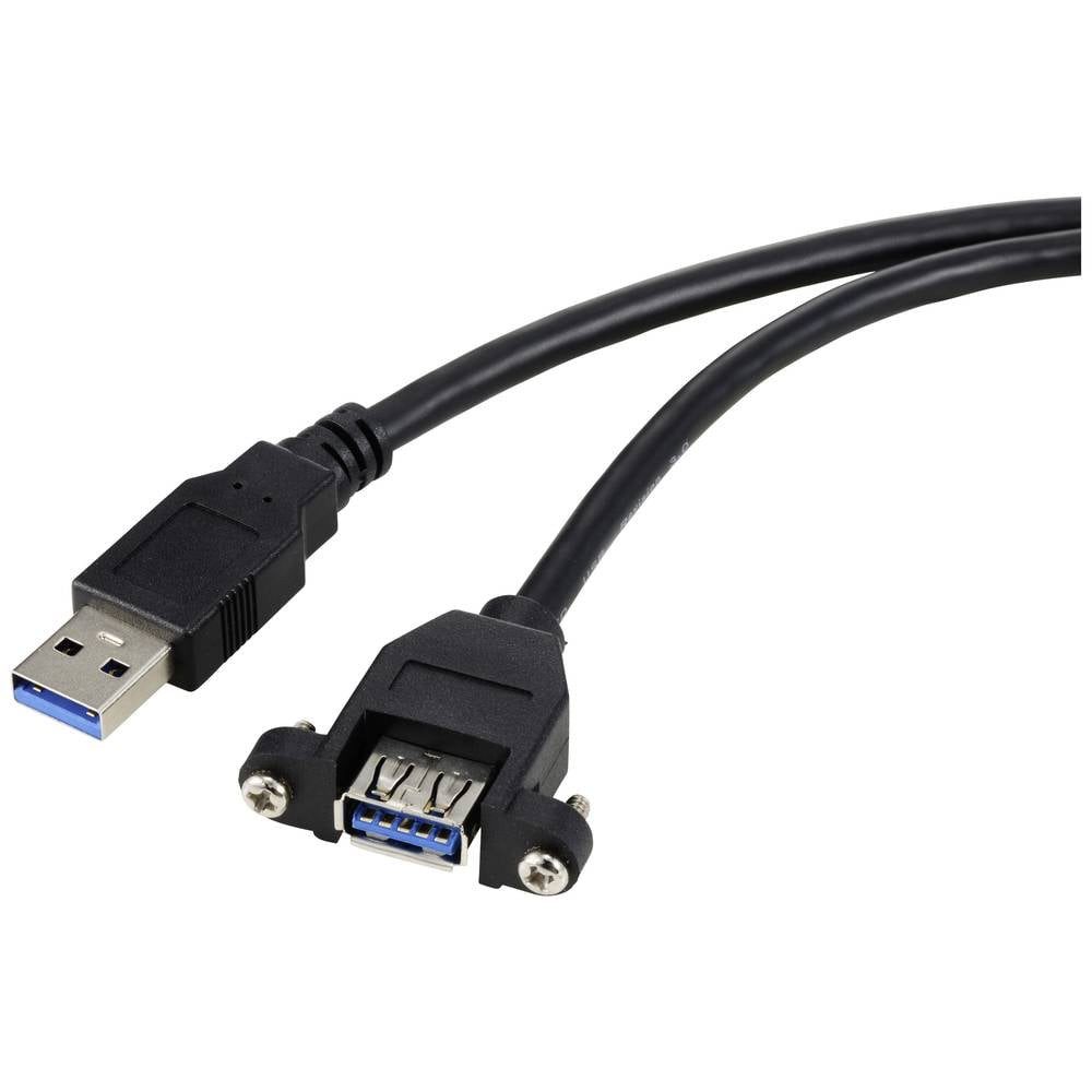 Eigenschaften | AWG: 28 · Abschirmung: Geflechtsschirmung · Anschluss-Typ: USB 3.2 Gen 1 (USB 3.0) · Anschlüsse: USB-A Stecker, USB-A Buchse · Herstellerfarbe: Schwarz · Innenleiter-Material: Kupfer · Kabel-Ausführung: Verlängerungskabel · Kabel-Besonderheiten: für Einbau, schraubbar · Kabel-Form: rund · Kabellänge: 1.00 m · Maximale Leistung: 4.5 W @ 5 V / 0.9 A · Maximale Übertragungsrate: 5 GBit/s · Plastikfreie Verpackung: Plastikfreie Verpackung · Signalfluss: Unidirektional (AB) · Spezifikation: USB 3.0 · Steckerausführung: gerade · Verbindungsart: USB-A auf USB-A |