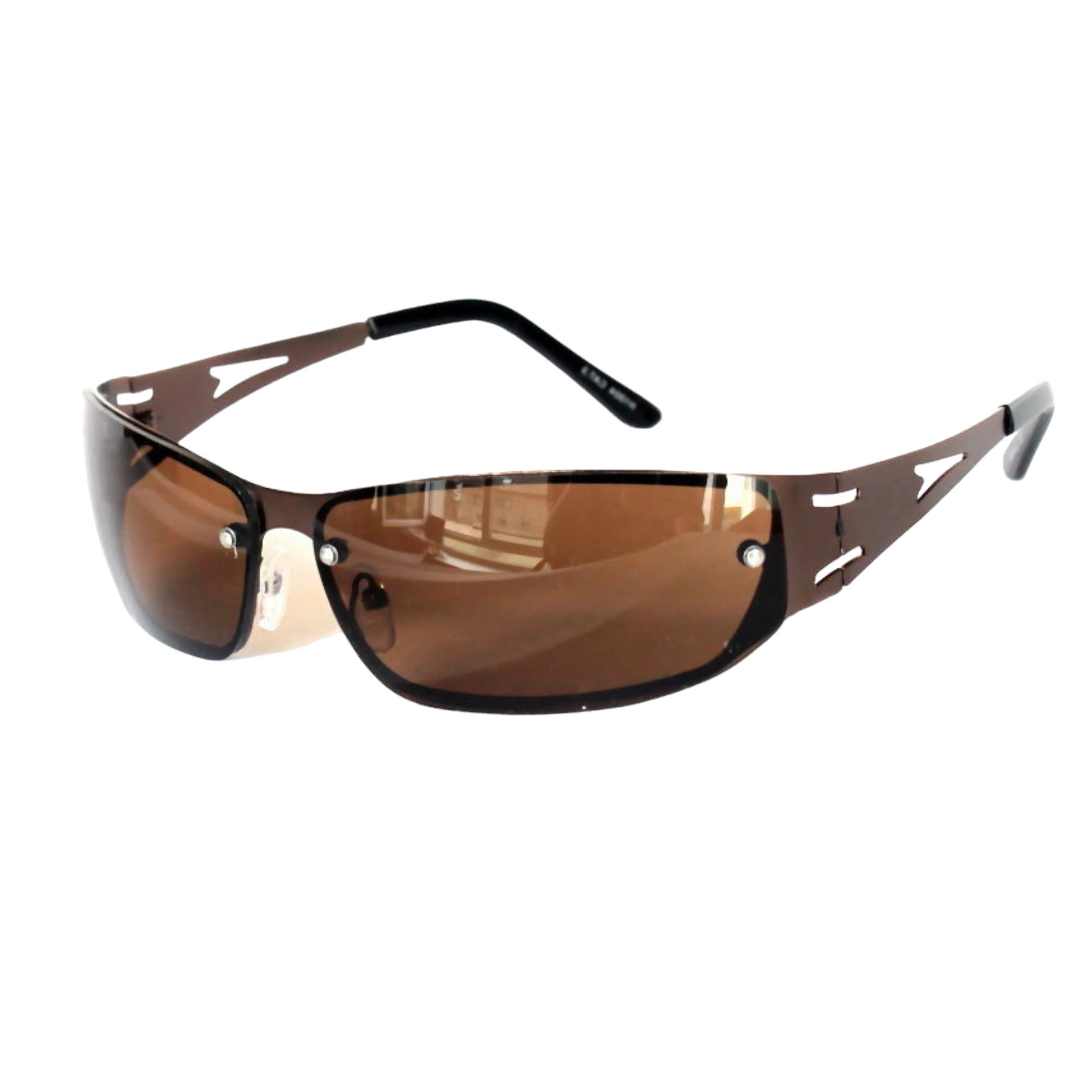 Wertige schmale Sonnenbrille Raverbrille im Motorsport Design von Rennec ® mit UV400 getönten Gläsern in Braun Gestell aus extra dünnen Federstahl