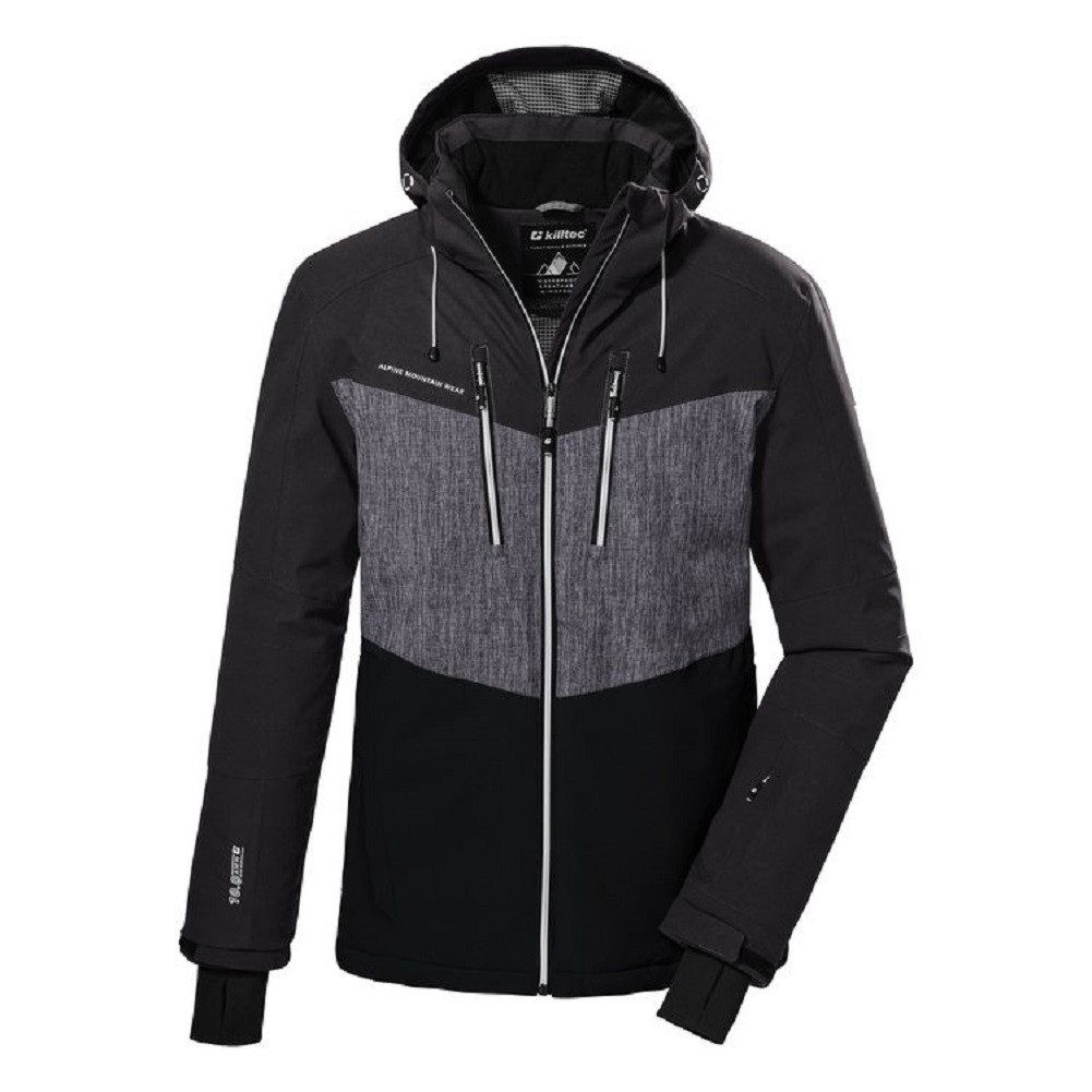 Die Skijacke von killtec kombiniert trendiges Colourblock Design mit cleveren Features. Die Jacke ist atmungsaktiv mit einer Wasserdampfdurchlässigkeit von 3.000 g/m²/24 h. Durch ihre 10.000 mm Wassersäule und verschweißte Nähte ist sie 100% wasserdicht. Die verstellbare Kapuze kann bei Bedarf abgenommen werden. Der Schneefang mit rutschfester Gummierung schützt vor dem Eindringen von Nässe. Die Jacke ist zusätzlich mit vielen nützlichen Taschen sowie elastischen Ärmelbündchen mit Daumenschlaufen ausgestattet, die das Eindringen von Wind verhindern. Der wasserdichte Reißverschluss ist mit einem Kinnschutz versehen, der ein Einklemmen der Haut verhindert. Die Weite des Saumes lässt sich durch einen Kordelzug regulieren. Zahlreiche weitere Taschen bieten Platz für Skibrille, Skipass und Co. killtec liegt es besonders am Herzen, die Kollektionen nachhaltiger und zukunftsfähiger zu machen. So setzt killtec verstärkt auf verantwortungsbewusstere Herstellungsverfahren. Diese Jacke ist daher PFC-frei.