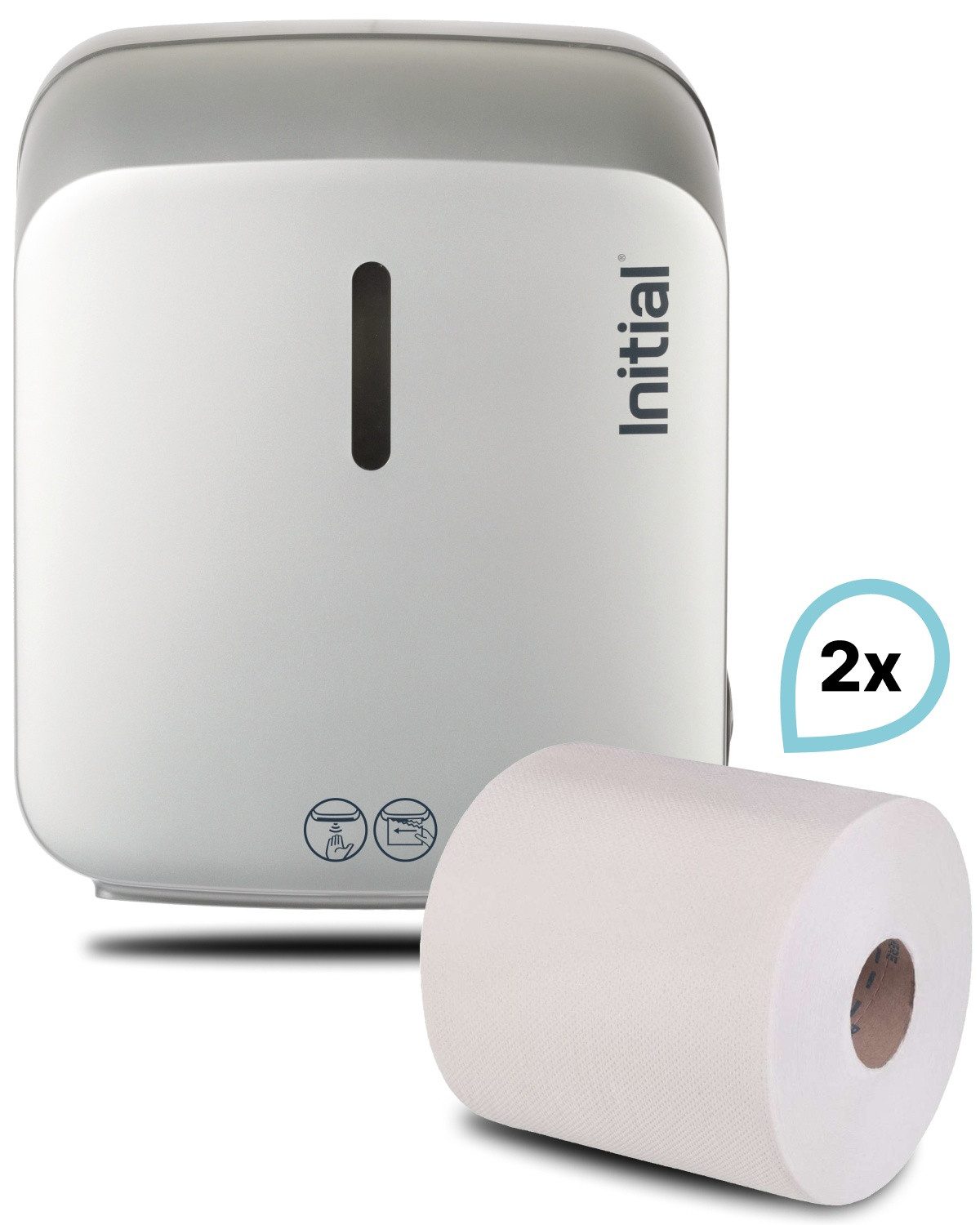 Der Handtuchrollenspender Signature Sensor von Initial: Schlanke Abmessungen und hoher Papiervorrat. Ideal für jeden Waschraum.