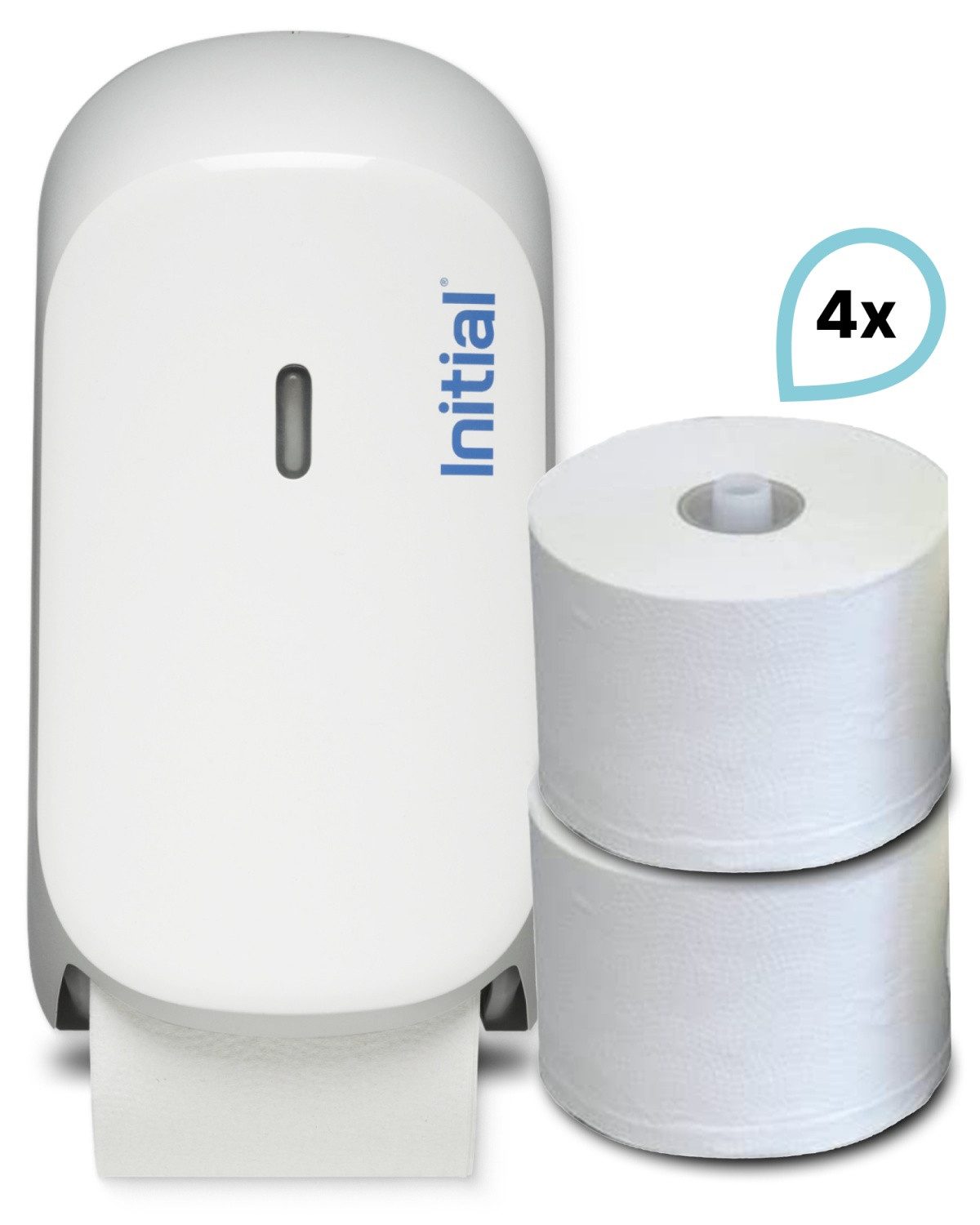 Toilettenpapierspender Signature KOMPAKT, Doppelrollenspender für 2 Rollen hochverdichtetes Spezialpapier (200 m), mit antibakteriell wirkendem Kunststoff, abschließbar, in Weiß ODER Silber, INITIAL