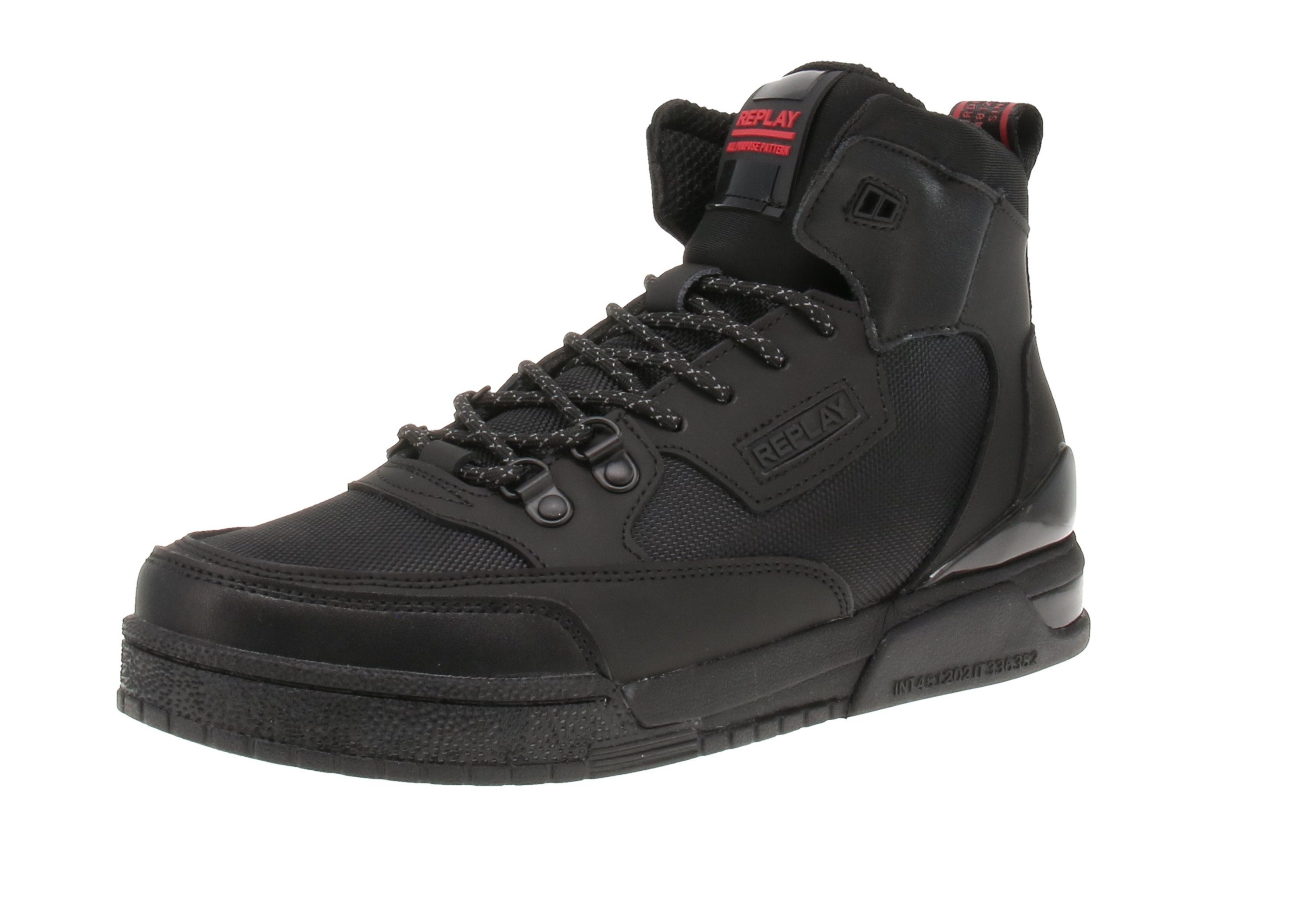 Dieser High-top-Schnürsneaker aus Leder und Textil von Replay überzeugt durch seine Retro-Silhouette mit schwarzer Sohle und raffinierten Logo-Details an der Seite, Zunge und Zuglasche.