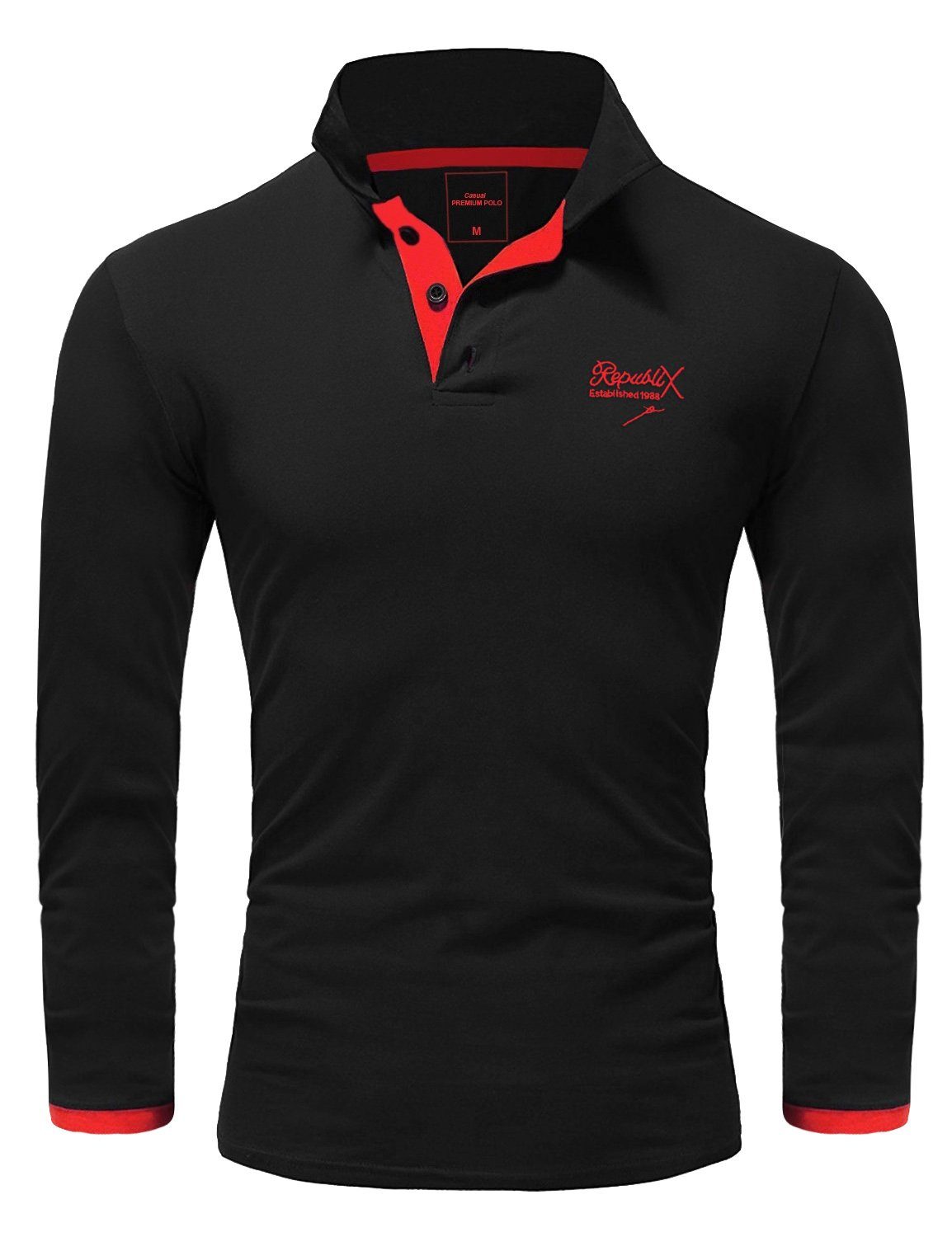 Besondere Merkmale | Herren Basic Langarm Kontrast Polo Hemd |