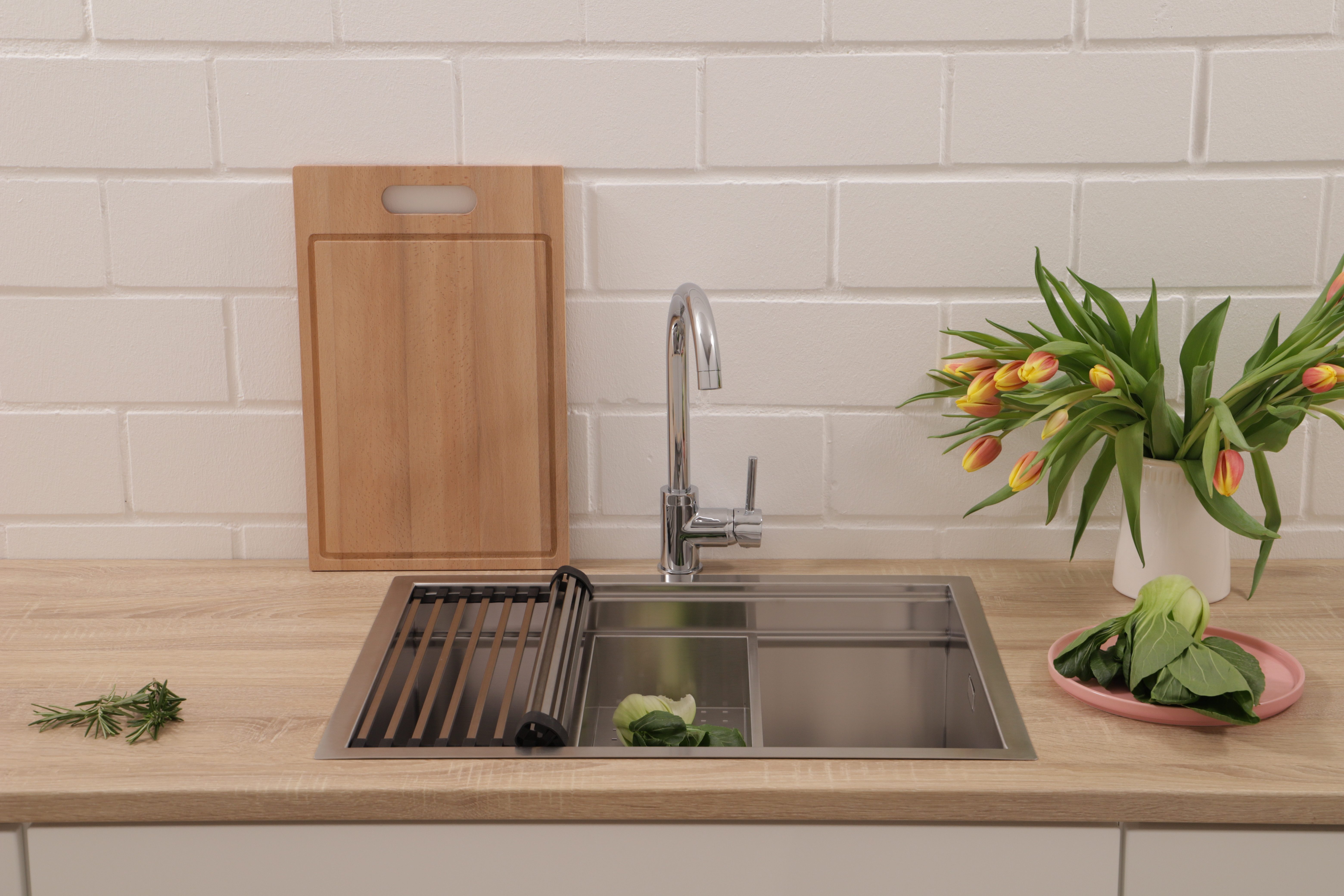 Lieferumfang | Abtropfgitter Edelstahlspüle Schneidbrett |