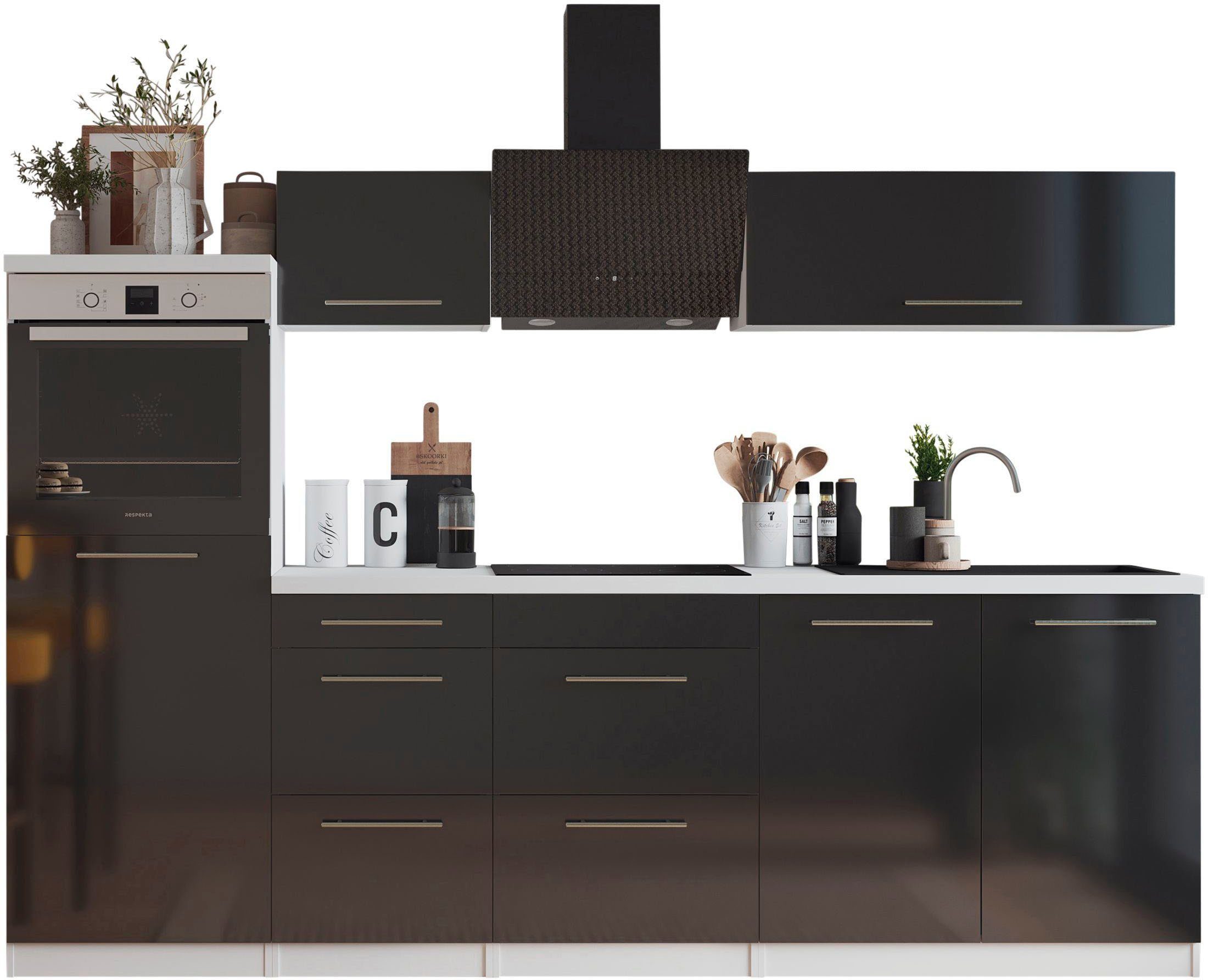 Ausstattung | Durchgehende Arbeitsplatte Schubkästen und Türen mit Soft-Close-Funktion Seitenverkehrt stellbar Sockelhöhe nicht verstellbar mit E-Geräten |