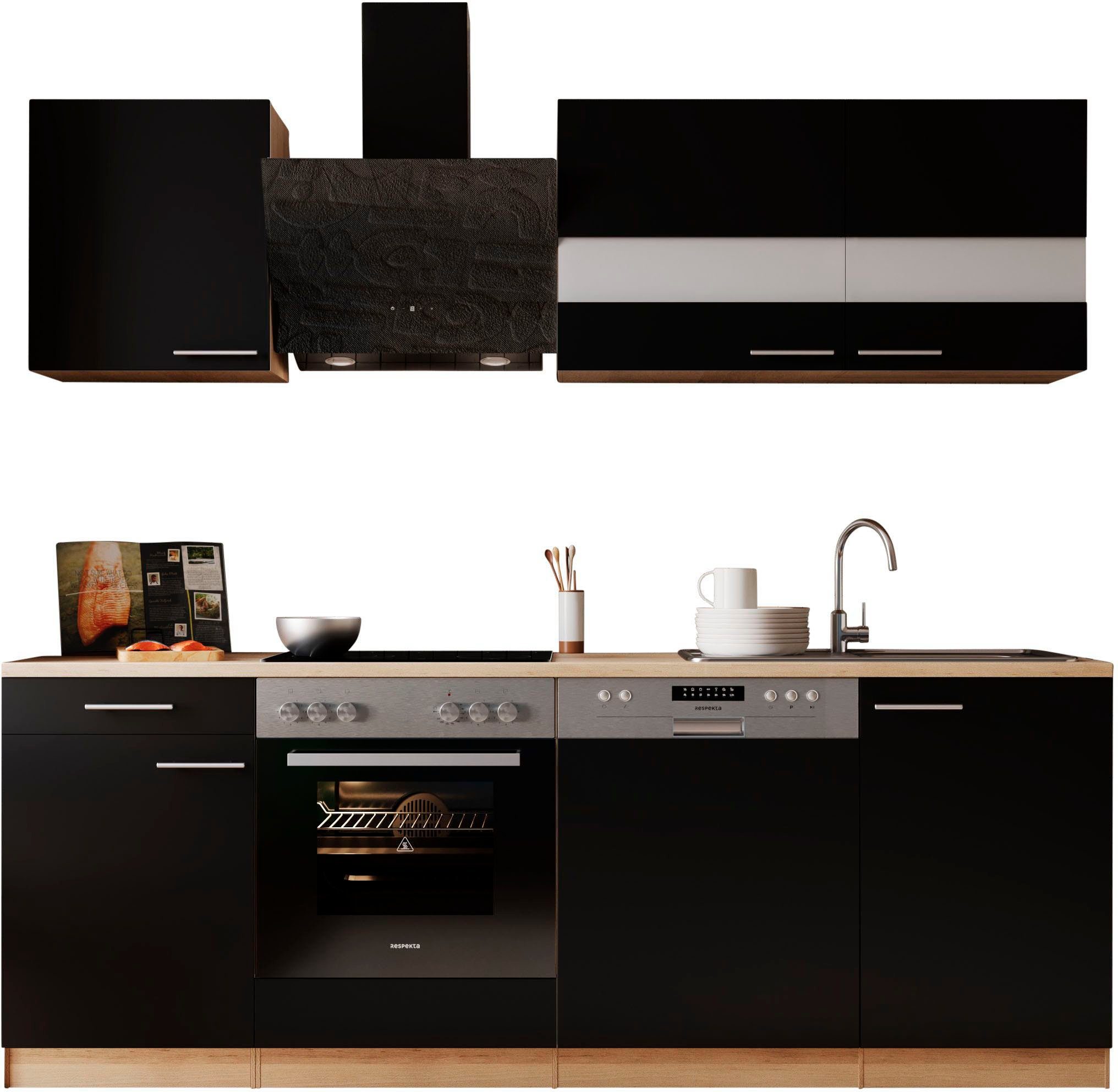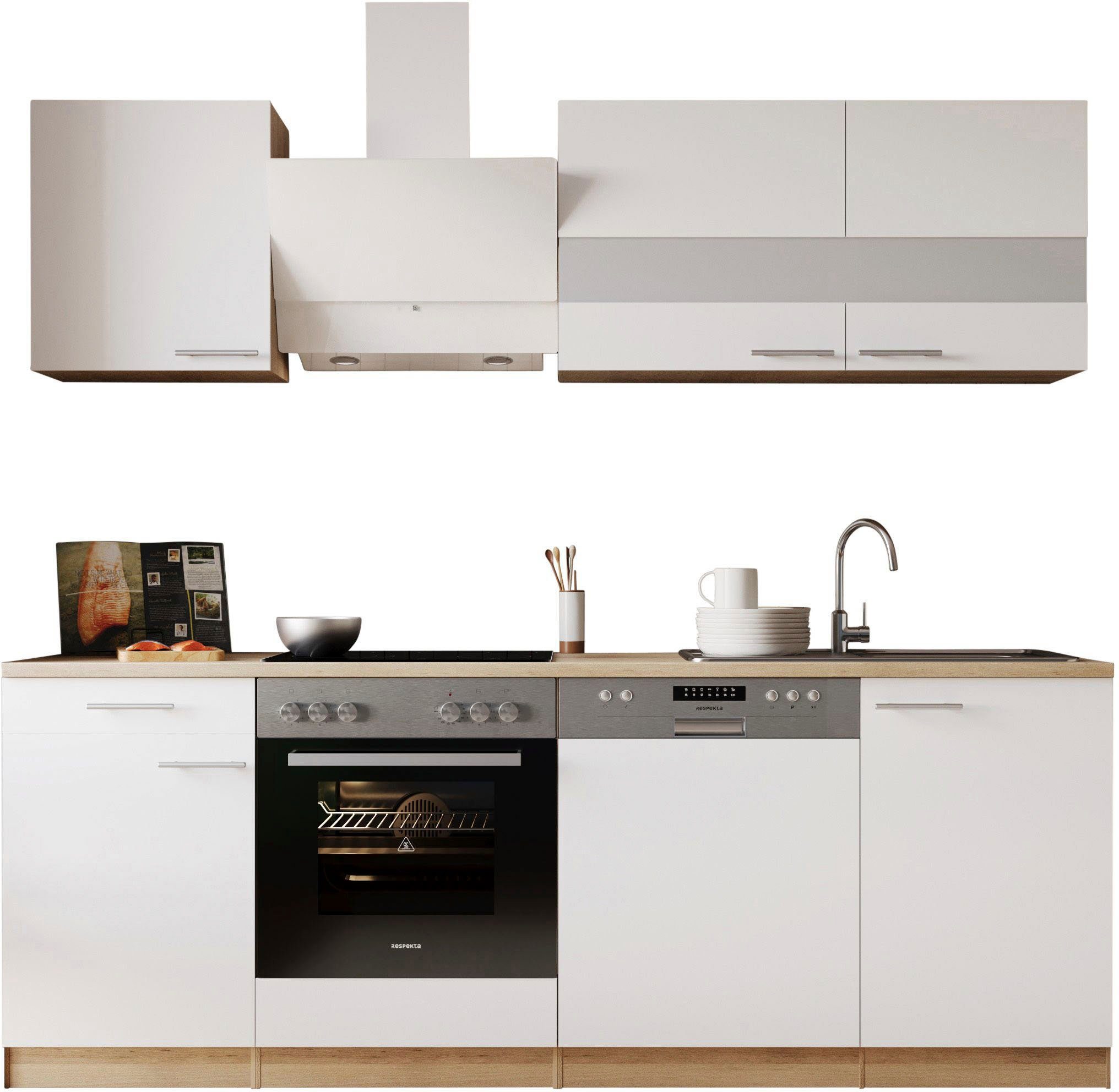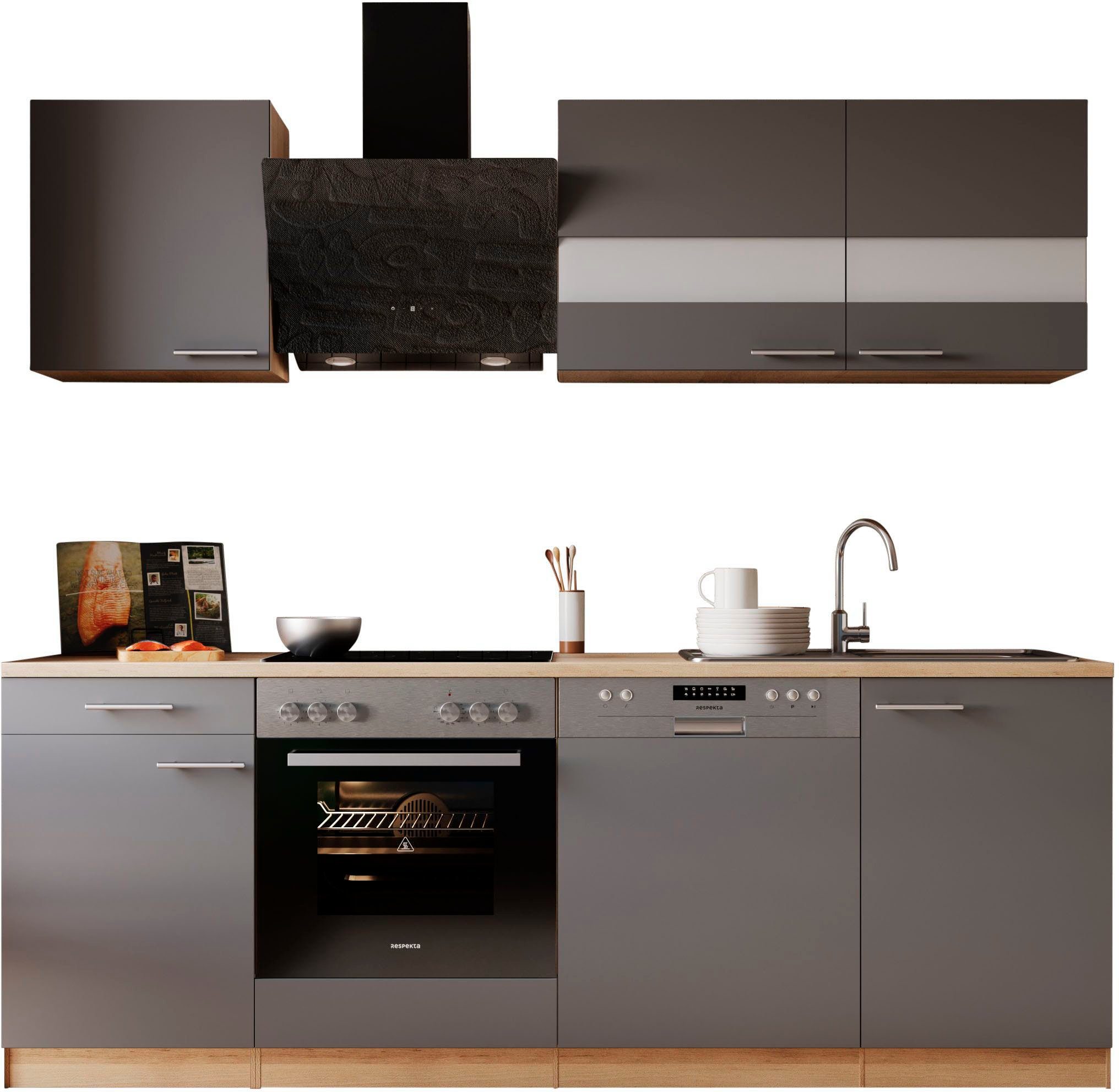 Ausstattung | Durchgehende Arbeitsplatte Seitenverkehrt stellbar Sockelhöhe nicht verstellbar inkl. Edelstahl-Einbauspüle, mit Abtropffläche mit E-Geräten |