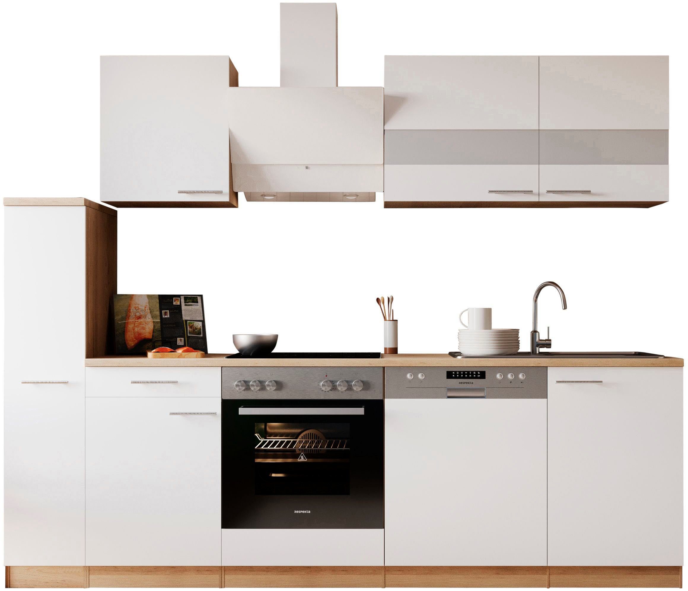 Ausstattung | Durchgehende Arbeitsplatte Seitenverkehrt stellbar Sockelhöhe nicht verstellbar inkl. Edelstahl-Einbauspüle, mit Abtropffläche mit E-Geräten |
