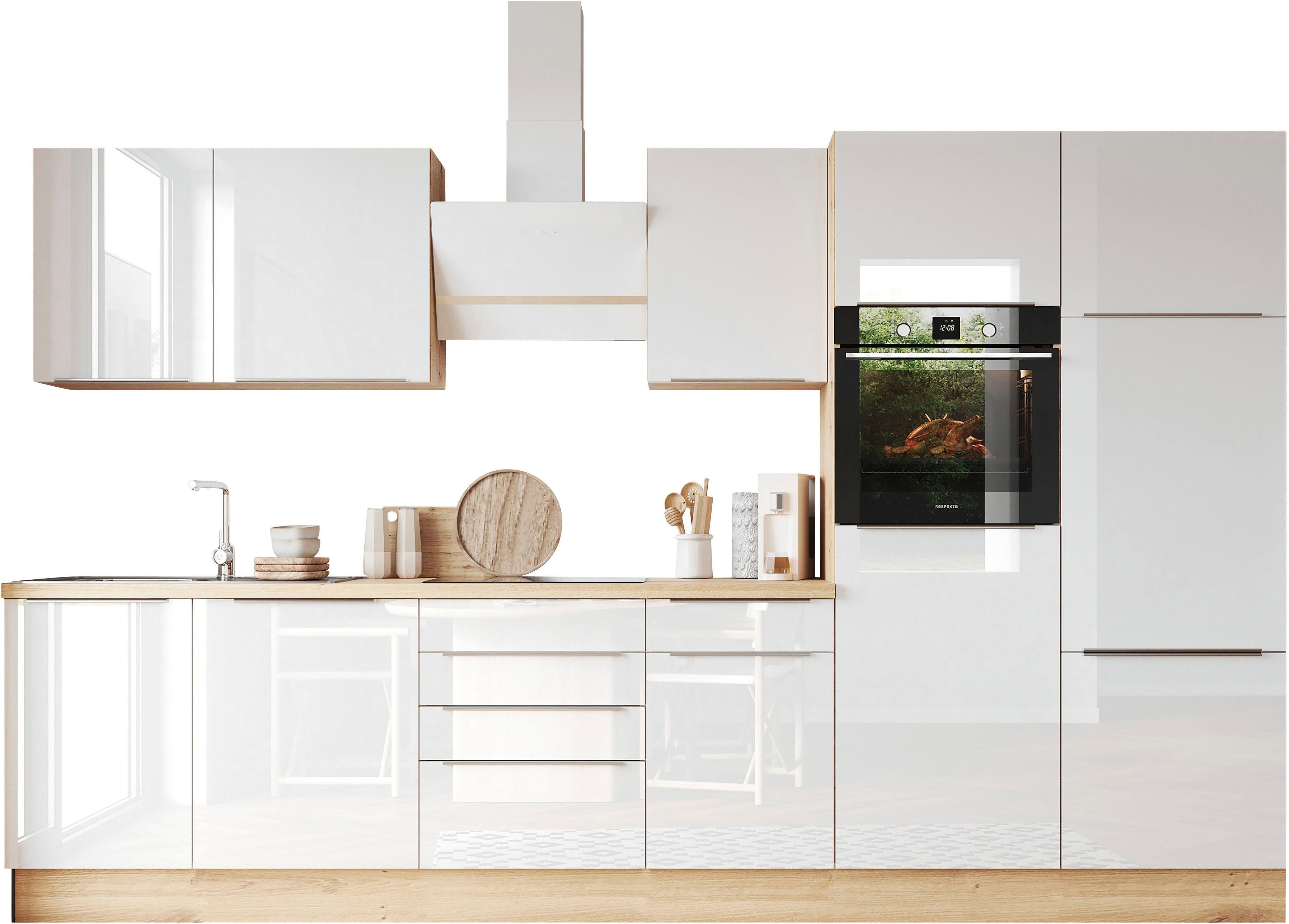 Ausstattung | Griffleiste Höhenverstellbare Füße Schubkästen und Türen mit Soft-Close-Funktion Türen wahlweise rechts/links montierbar inkl. Edelstahl-Auflagespüle, mit Abtropffläche |