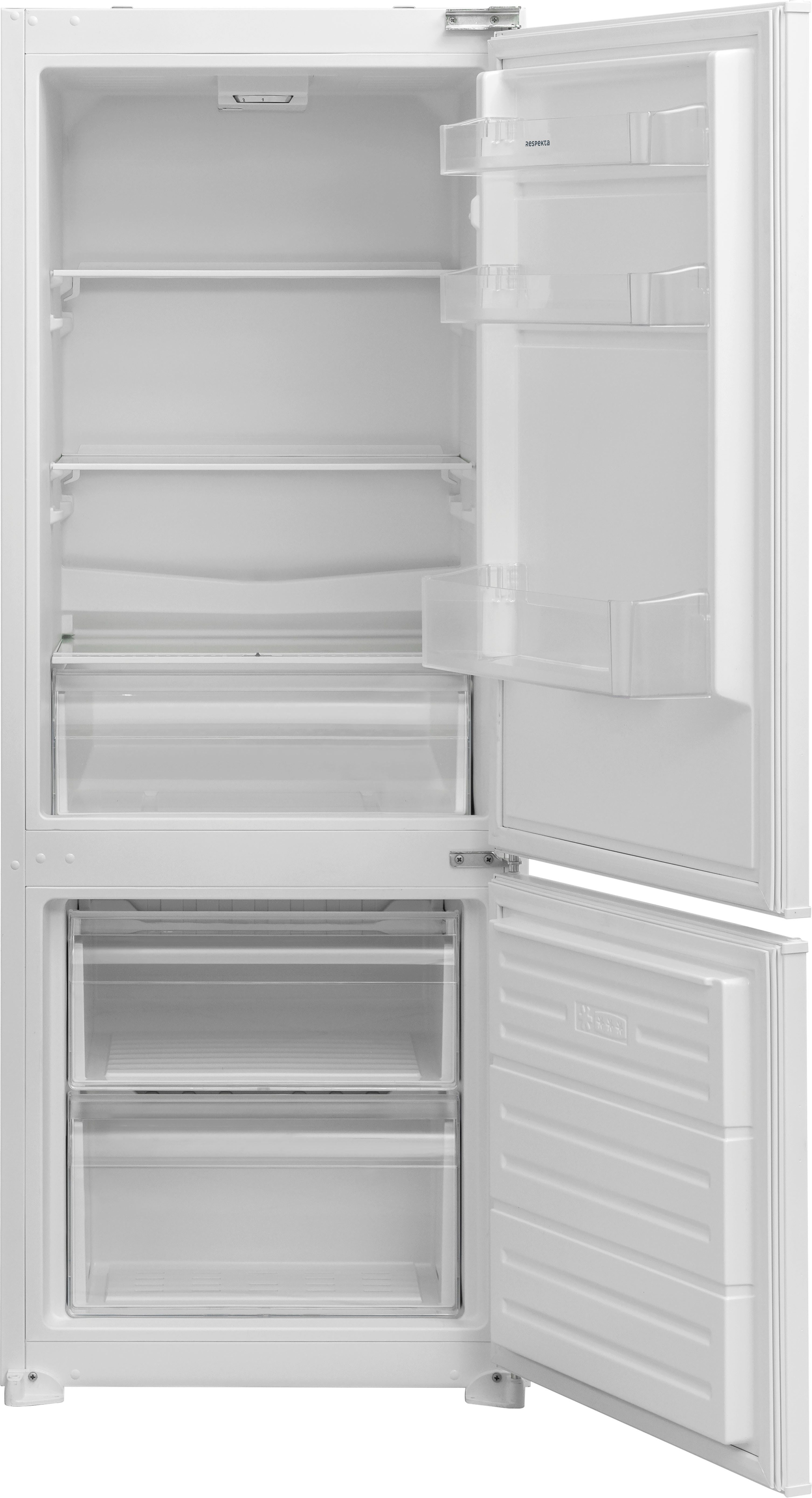 Die »131201442400-10« ist eine Kühl- und Gefrierkombination von RESPEKTA. Ausreichend Platz bietet das 54 x 144 x 54,5 cm (B/H/T) große Modell mit seinen 57 l Gefriervolumen und 154 l Kühlvolumen. Das Betriebsgeräusch des Modells liegt bei 38 dB. Durch die LowFrost-Technologie bildet sich erheblich weniger Eis als bei herkömmlichen Geräten. Das Abtauen gelingt daher deutlich schneller und verbraucht dabei weniger Strom. Das Gerät besitzt zwei Gefrierschubladen und eine Gemüseschublade. Zusätzliche Variabilität bei der Aufbewahrung bieten die drei Türablagen. Besonders schnell kühlen und einfrieren lassen sich Nahrungsmittel dank der Schnellgefrier-Funktion. Den Überblick behält man außerdem durch die LED-Innenbeleuchtung. Die »131201442400-10« von RESPEKTA ist eine Kühl- und Gefrierkombination, die mit ihren Features überzeugt und genug Platz für Lebensmittel aller Art bietet.