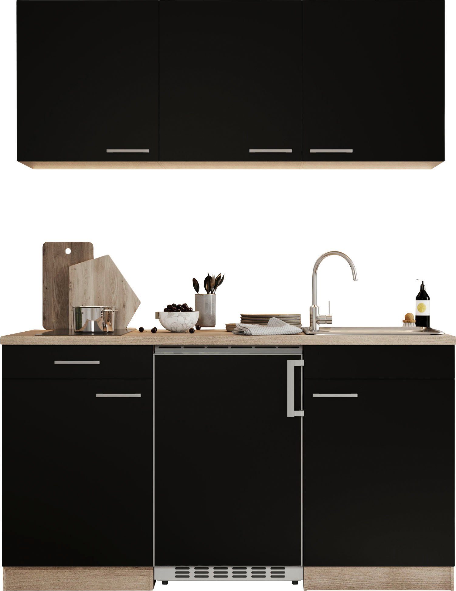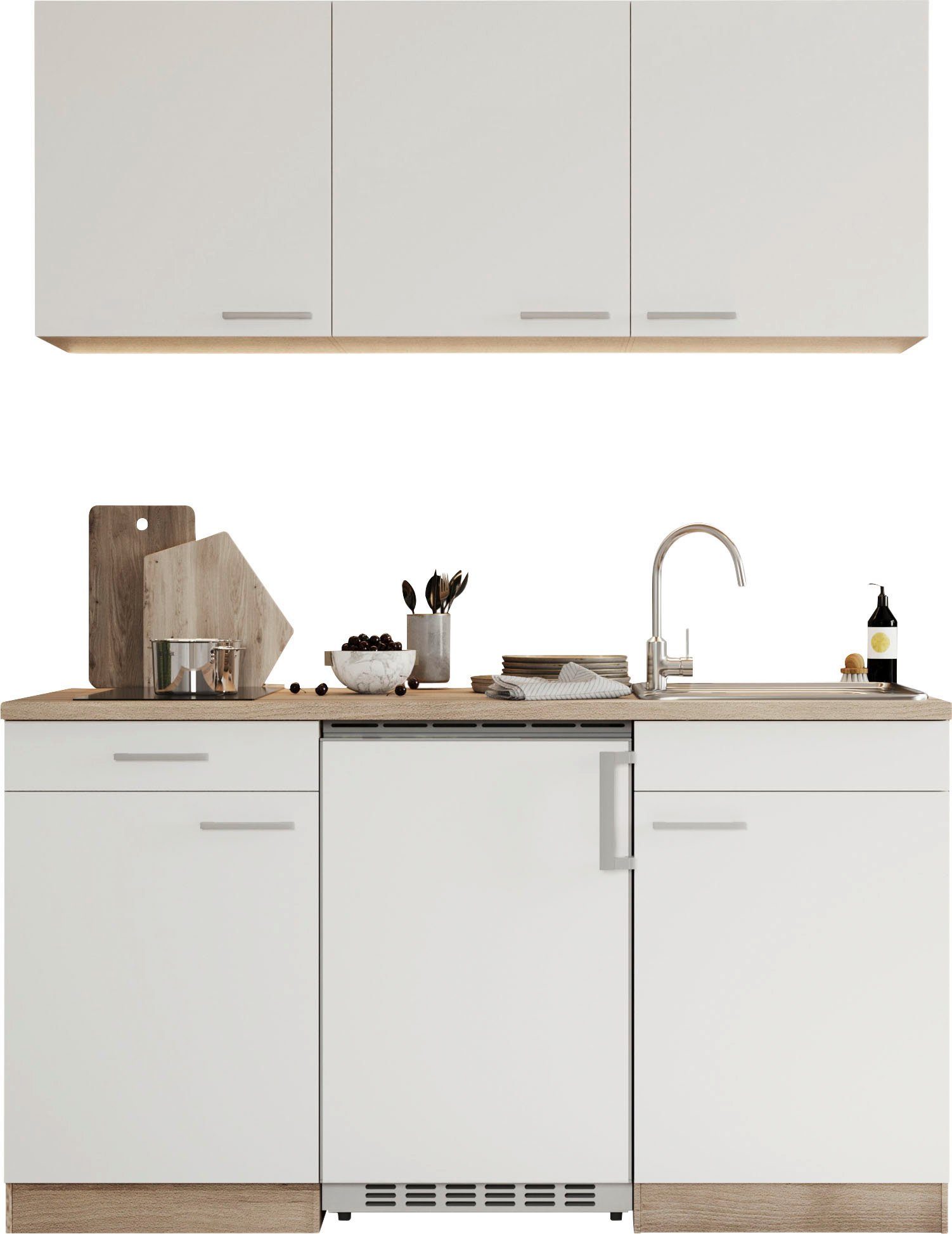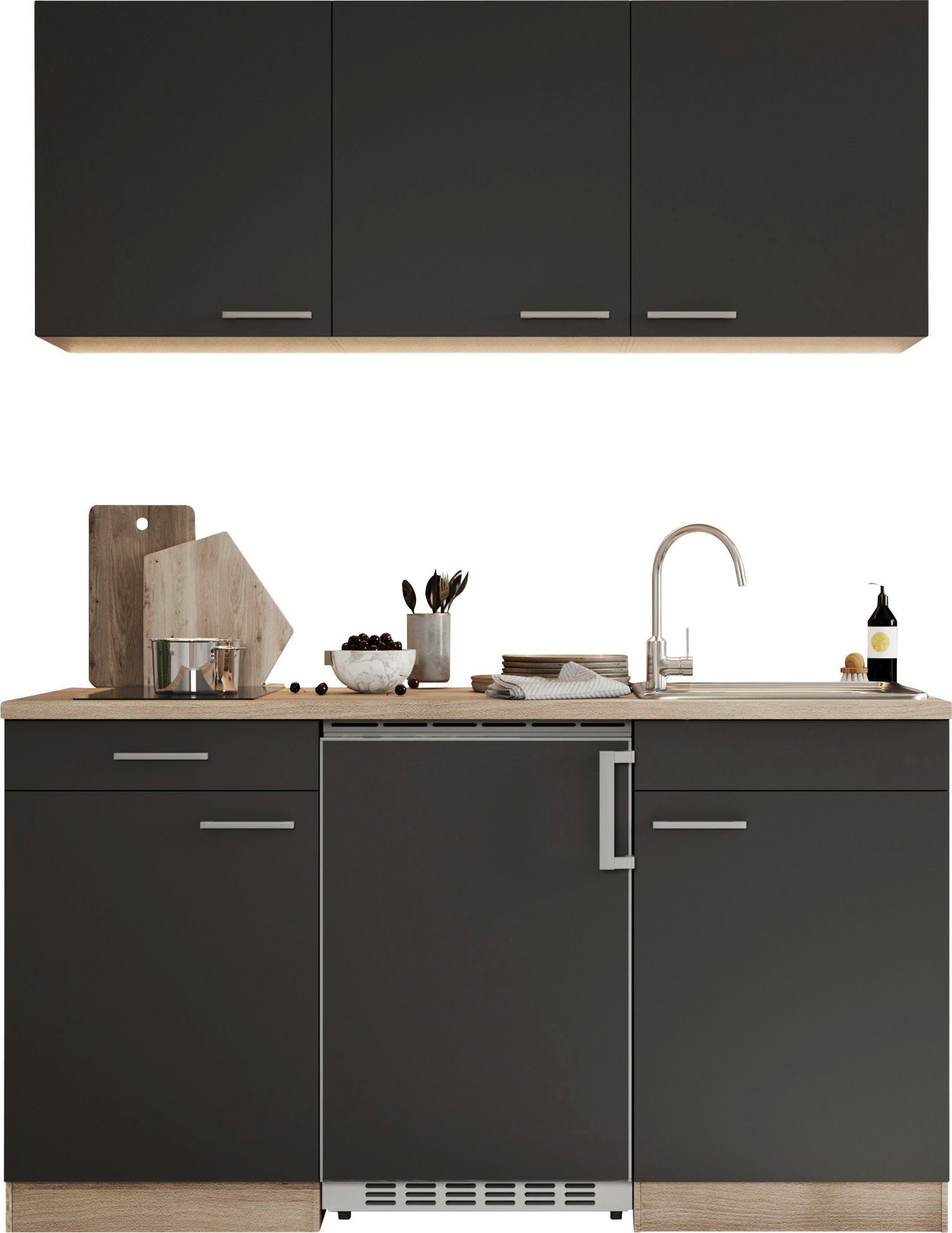 Ausstattung | Durchgehende Arbeitsplatte Seitenverkehrt stellbar Sockelhöhe nicht verstellbar inkl. Edelstahl-Einbauspüle, mit Abtropffläche mit E-Geräten |