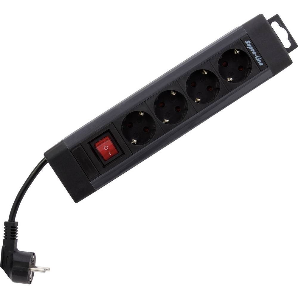 Eigenschaften | Anschluss-Leistung (Details): 3500 W · Betriebsspannung: 250 V · Einsatzort: Innenbereich · Herstellerfarbe: Schwarz, Anthrazit · Kabel-Typ nach DIN/VDE: H05VV-F 3G 1,5 mm² · Material: Kunststoff · Netzstecker-Typ: Schutzkontakt · Produktabmessung, Breite: 295 mm · Produktabmessung, Höhe: 70 mm · Produktabmessung, Длина: 42 mm · Schutzart: IP20 · Steckdosen-Anzahl: 4 · Steckdosenleisten-Besonderheiten: mit Schalter, erhöhter Berührungsschutz |