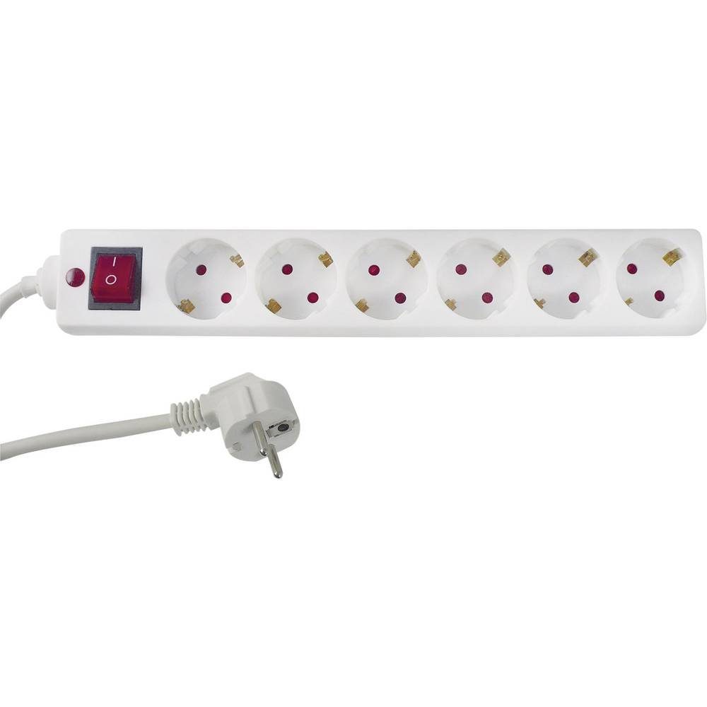 Eigenschaften | Ableitstrom (Details): max. 12000 A · Anschluss-Leistung (Details): 3500 W · Betriebsspannung: 230 V · Einsatzort: Innenbereich · Funktionsanzeige: optisch · Herstellerfarbe: Weiß · Kabel-Typ nach DIN/VDE: H05VV-F 3G 1,5 mm² · Kabellänge: 1.40 m · Netzstecker-Typ: Schutzkontakt · Produktabmessung, Breite: 340 mm · Produktabmessung, Höhe: 60 mm · Produktabmessung, Длина: 40 mm · Schutzart: IP20 · Steckdosen-Anzahl: 6 · Steckdosenleisten-Besonderheiten: erhöhter Berührungsschutz, Überspannungsschutz, mit Schalter |