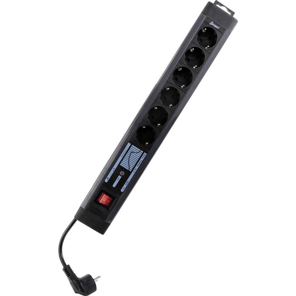 Eigenschaften | Ableitstrom (Details): 30.000 A · Anschluss-Leistung (Details): 3500 W · Betriebsspannung: 250 V · Einsatzort: Innenbereich · Funktionsanzeige: optisch · Herstellerfarbe: Anthrazit, Schwarz · Kabel-Typ nach DIN/VDE: H05VV-F 3G 1,5 mm² · Kabellänge: 3.00 m · Netzstecker-Typ: Schutzkontakt · Produktabmessung, Breite: 70 mm · Produktabmessung, Höhe: 42 mm · Produktabmessung, Длина: 486 mm · Steckdosen-Anzahl: 6 · Steckdosenleisten-Besonderheiten: erhöhter Berührungsschutz, mit Schalter, Überspannungsschutz · Впередe technische Daten: Anforderungsklasse EN 61643: Typ 3/III · Überspannungsschutz für: Steckdosen |