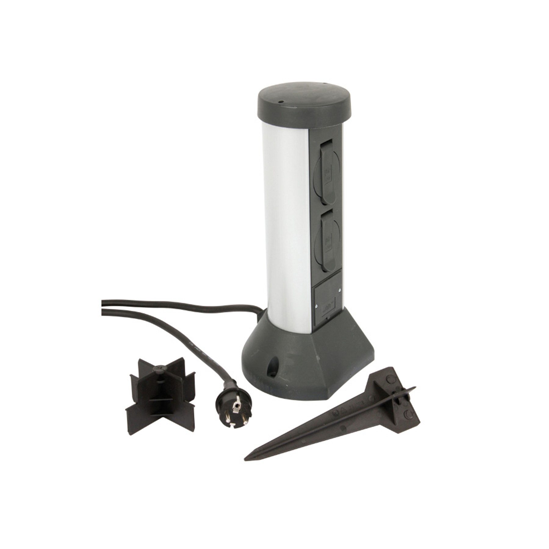 Lieferumfang: Steckdosensäule mit Kabel, Erdspieß, Einschlaghülse, Anleitung.