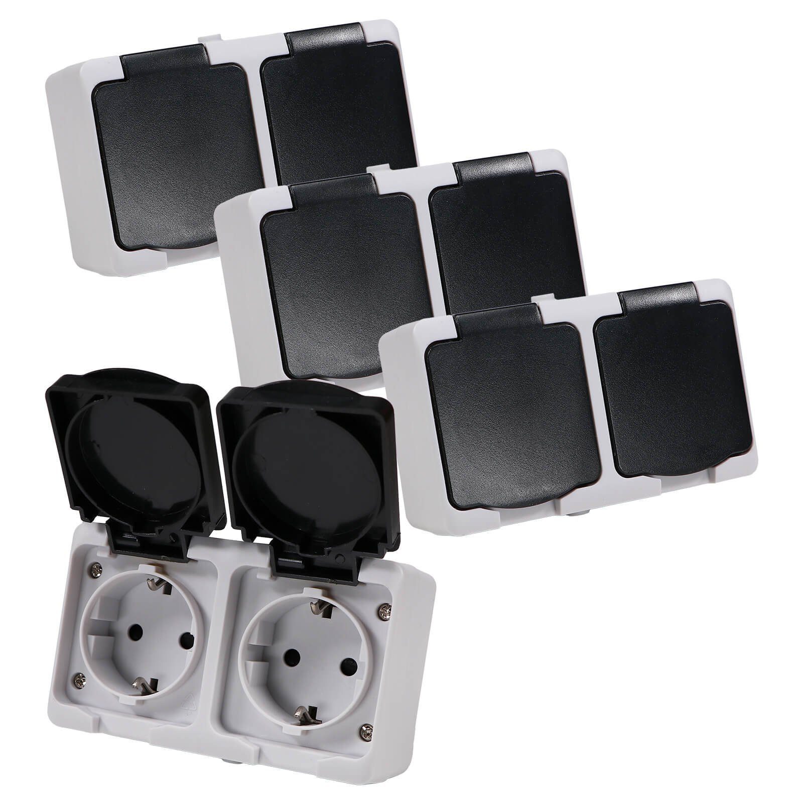 KOMPATIBEL - 2-fach Schutzkontakt-Steckdose kombinierbar mit den Aufputz-Feuchtraum Schaltern und Steckdosen AquaMini für eine individuelle Raumgestaltung im und rund ums Haus