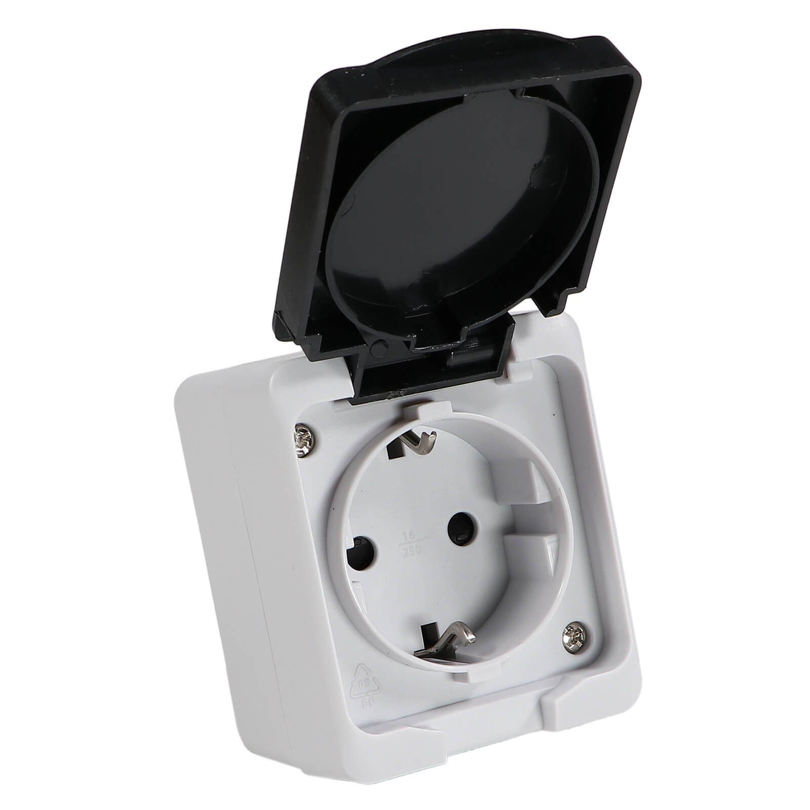 KOMPATIBEL - Schutzkontakt-Steckdose kombinierbar mit den Aufputz-Feuchtraum Schaltern und Steckdosen AquaMini für eine individuelle Raumgestaltung im und rund ums Haus