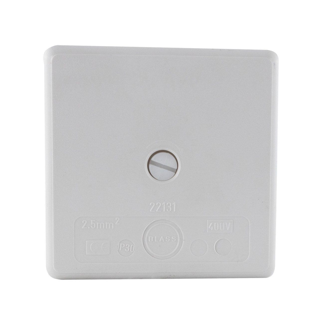 Produktdetails: Verbindungsdose für Aufputz Wand- und Deckenmontage mit 4-poliger Klemme und Deckel-Schnellverschlussschraube | Montageart: Aufputz | Schutzart: IP30 | Anzahl der Einführungen: 8 | Produktmaße: (LxBxH) 8 x 8 x 2,8 cm | Flammwidrig bis 650 Grad |