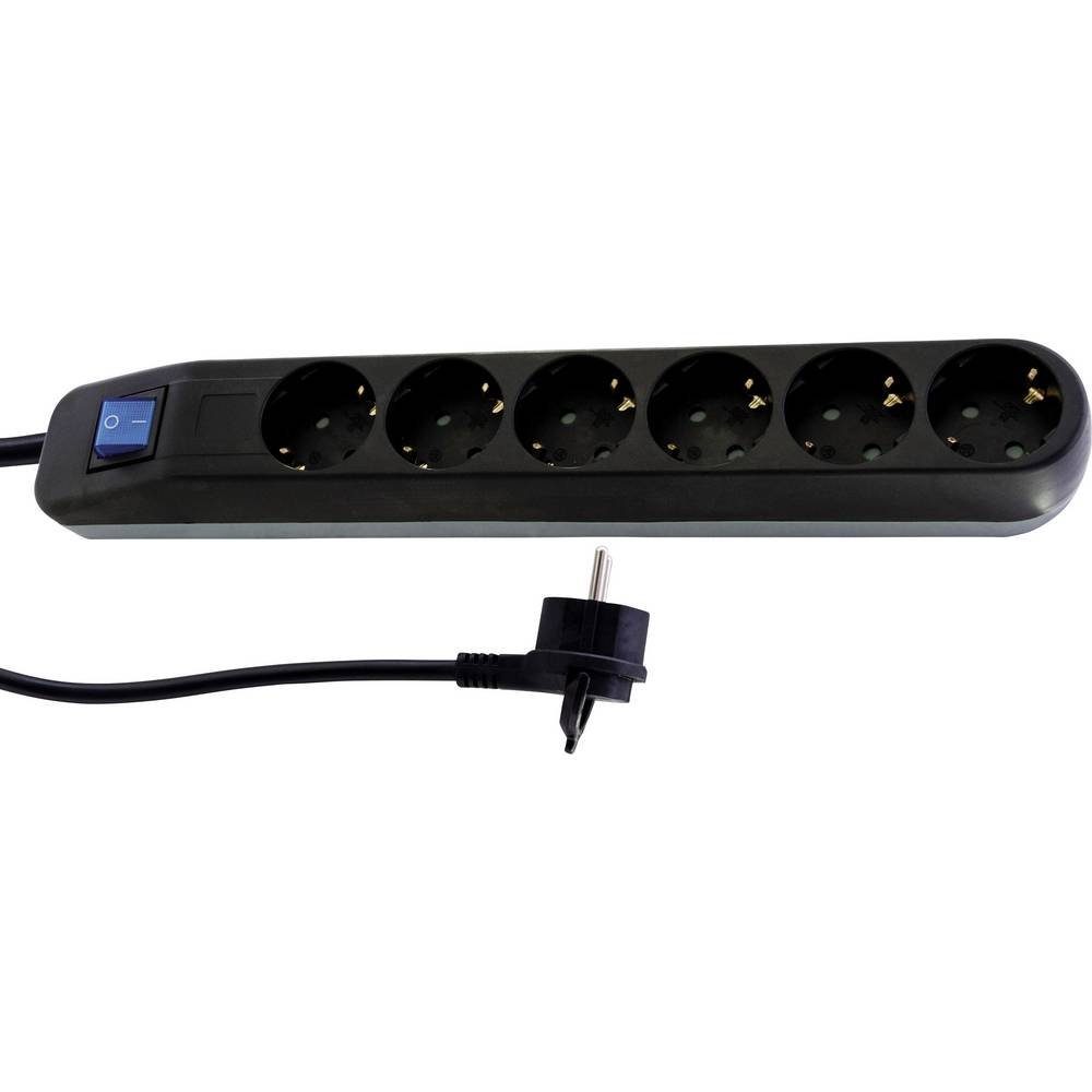 Eigenschaften | Anschluss-Leistung (Details): 3500 W · Ausführung (allgemein): 6-fach, schwarz, mit Schalter · Betriebsspannung: 230 V · Einsatzort: Innenbereich · Funktionsanzeige: optisch · Herstellerfarbe: Schwarz · Kabel-Typ nach DIN/VDE: H05VV-F 3G 1,5 mm² · Kabellänge: 1.40 m · Material: Kunststoff · Montageart: Befestigungsclip · Netzstecker-Typ: Schutzkontakt · Steckdosen-Anzahl: 6 · Steckdosenleisten-Besonderheiten: erhöhter Berührungsschutz · Впередe technische Daten: Nennstrom: 16 A. |