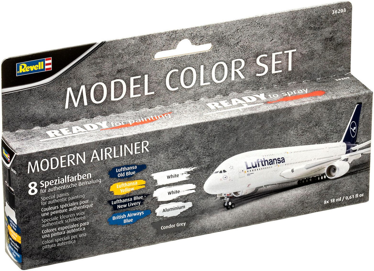 Aus der Flasche direkt in die Pistole, kein weiteres verdünnen notwendig. Bestehend aus 8 verschiedenen Farbtönen direkt abgestimmt auf die modernen Airliner Liveries. Auch ein dünner Auftrag durch den Pinsel ist möglich. Einfaches Dosieren durch Flaschenspitze. EINZIGARTIGE PALETTE FÜR SPORTWAGEN: Das Modell Farbset - Sportwagen (Artikelnummer 36202) bietet eine hochwertige Auswahl von acht Sonderfarben, die speziell auf die Gestaltung von Modellautos abgestimmt sind. Diese einzigartige Palette verleiht Ihrem Modell eine lebendige und authentische Optik. PERFEKT FÜR ALLE ERFAHRUNGSGRADE: Egal ob Anfänger, Fortgeschrittener oder Experte, dieses Farbset ist für Modellbauer jeden Erfahrungsgrads geeignet. Die gebrauchsfertigen Farben ermöglichen eine einfache Anwendung mit Airbrush oder Pinsel. SONDERFARBEN FÜR EINZIGARTIGEN LOOK: Das Set enthält exklusive Farbtöne, die außerhalb des Standard-Revell-Менюs liegen. Diese besonderen Töne verleihen Ihrem Modellauto einen individuellen und authentischen Charakter. EINFACHE ANWENDUNG OHNE VERDÜNNUNG: Die Farben sind sofort einsatzbereit und können direkt aus der Flasche in die Airbrush-Pistole gefüllt werden, ohne dass eine weitere Verdünnung notwendig ist. Auch für das Pinselauftragen eignen sie sich hervorragend. DETAILGENAUIGKEIT UND REALISMUS: Der Modell Farbset - Sportwagen ermöglicht eine neue Ebene der Detailgenauigkeit und des Realismus in Ihren Modellbau-Projekten. Egal ob Sie Anfänger oder Profi sind, dieses Farbset bringt Ihre Leidenschaft für Modellautos zum Leben.
