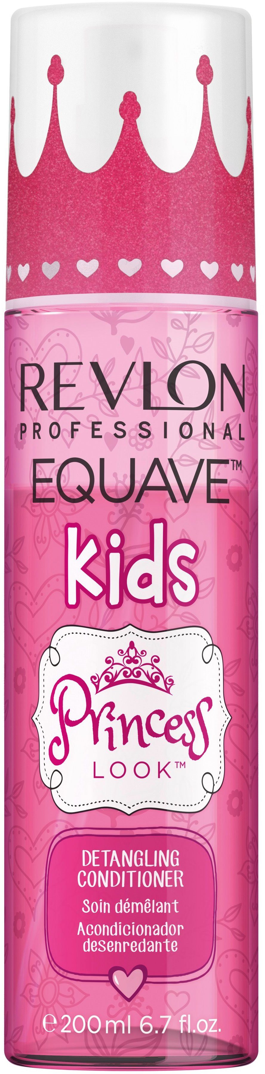 EQUAVE Kids Princess Conditioner (200 ml): Die hypoallergene Formel des sofort entwirrenden Leave-in Conditioners enthält speziell ausgewählte Inhaltsstoffe, die eigens für Kinderhaut und -haare geeignet sind. Ohne Parabene, Konservierungsmittel, Farbstoffe und Всеrgene! Dabei schützen die 2 Phasen das Haar vor Verfilzungen sowie statischer Aufladung und machen es unglaublich glänzend und seidenweich. Zusätzlich sorgt das Haarprodukt für einen feinen Duft nach Blumen und Früchten, in den sich Ihre kleine Prinzessin verlieben wird. Für den perfekten Princess Look mit strahlendem, glänzendem Haar schütteln Sie die Flasche vor Gebrauch kräftig, damit sich die zwei Phasen gründlich vermischen. Anschließend verteilen Sie den Conditioner auf das feuchte oder trockene Haar und kämmen es durch. Nicht ausspülen und Kontakt mit der Kleidung vermeiden. Perfekt für alle kleinen Prinzessinnen – glänzendes, seidenweiches Haar mit feinem Blumenduft. EQUAVE. Die Pflegeserie mit Sofortwirkung. Das Produkt besitzt folgende Eigenschaften: » entwirrender Leave-in Conditioner » speziell für die Haare von Kindern geeignet » 200 ml Sprühflasche » Princess Look mit strahlendem, glänzendem Haar » mit spezieller Zwei-Phasen-Formel. EQUAVE ist unsere Produktserie an entwirrenden Conditionern mit Kultstatus für sofort sichtbare Ergebnisse. Vor über 25 Jahren entwickelte REVLON PROFESSIONAL einen bahnbrechenden Zwei-Phasen-Conditioner zur Entwirrung des Haars, der sofort einen riesigen Erfolg feierte. Seitdem profitieren Frauen auf der ganzen Welt von den einzigartigen Vorteilen, die EQUAVE bietet. Eine Produktserie, die praktisch und einfach anzuwenden ist. Mit einer Formel, die sofort pflegt und das Haar leichter kämmbar macht. Die Pflegeserie mit Sofortwirkung für weiches, glänzendes und geschmeidiges Haar.