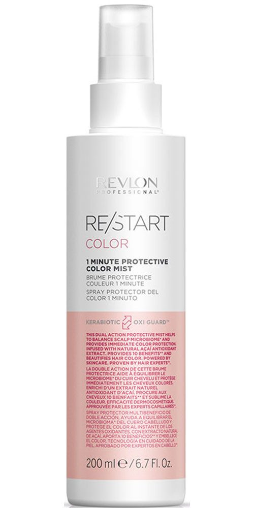 RE/START Color 1 Minute Protective Mist (200 ml): Mit diesem Farbschutzspray verwöhnen Sie Ihr Haar mit einem doppelwirksamen Haar- und Kopfhautsystem. Das KERABIOTIC SYSTEM kombiniert bewährte Wirkstoffe der Hautpflege mit modernsten Haarpflege-Lösungen. Die besondere Formel des Sprays verleiht Ihnen ein angenehmes Haargefühl und sorgt in Kombination mit dem RE/START Shampoo sowie den anderen Color Produkten für eine gepflegte, vitale Kopfhaut. Das RE/START Color 1 Minute Protective Mist ist für coloriertes Haar geeignet und ideal für alle, die ihren strapazierten Haaren Feuchtigkeit, Farb- und UV-Schutz bieten möchten. Das pflegende Spray versiegelt die Haaroberfläche und schützt farbbehandeltes Haar vor dem Verblassen. Sorgen Sie für ein natürliches Gleichgewicht des Kopfhaut-Mikrobioms und erhalten jeden Tag natürlich glänzende Haare. Das Produkt einfach von den Длинаn in die Spitzen auf das nasse Haar sprühen und nicht auswaschen. *in Verbindung mit dem RE/START Shampoo. RE/START – RETHINK HAIRCARE. Das Produkt besitzt folgende Eigenschaften: » Farbschutzspray mit Zweifachwirkung » UV-Schutz, Schutz vor Verblassen der Haarfarbe und Schädigungen von außen » 200 ml Flasche » von Haarexperten weiterentwickelt » speziell für coloriertes Haar. Es ist Zeit für einen Neustart – mit RE/START – der Start für modernste Haarpflege-Technologien. Basierend auf bewährter Hautpflege sind alle Haarpflegeprodukte von RE/START von Haarexperten weiterentwickelt und speziell auf die besonderen Bedürfnisse verschiedener Haartypen zugeschnitten. Eine vitale, gesunde Kopfhaut ist immer eine Voraussetzung für schönes Haar. So wird zum einen das Kopfhaut-Mikrobiom in ein natürliches Gleichgewicht gebracht, zum anderen werden die Haarfasern versiegelt und spezifische Bedürfnisse des Haares behandelt: Feuchtigkeit, Farbschutz, Aufbau und Volumen. Mit RE/START gehen auch Sie neue Wege und wagen einen Neustart für Ihr Haar.