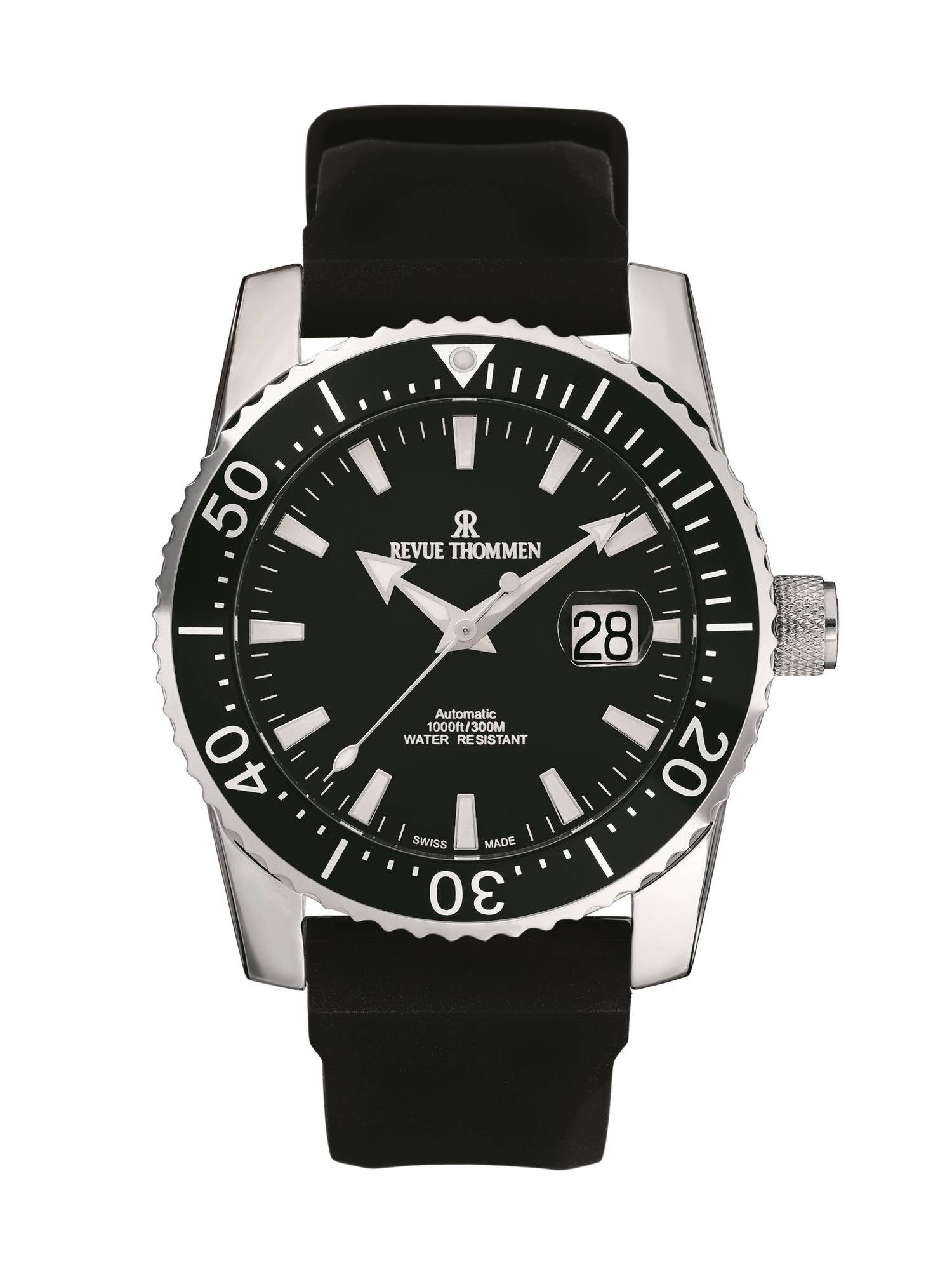Revue Thommen Armbanduhr Automatik Werk, Gehäuse Ø 46 mm , Edelstahl, Lünette schwarz, Sapphire Crystal, Datum, Kautschukband