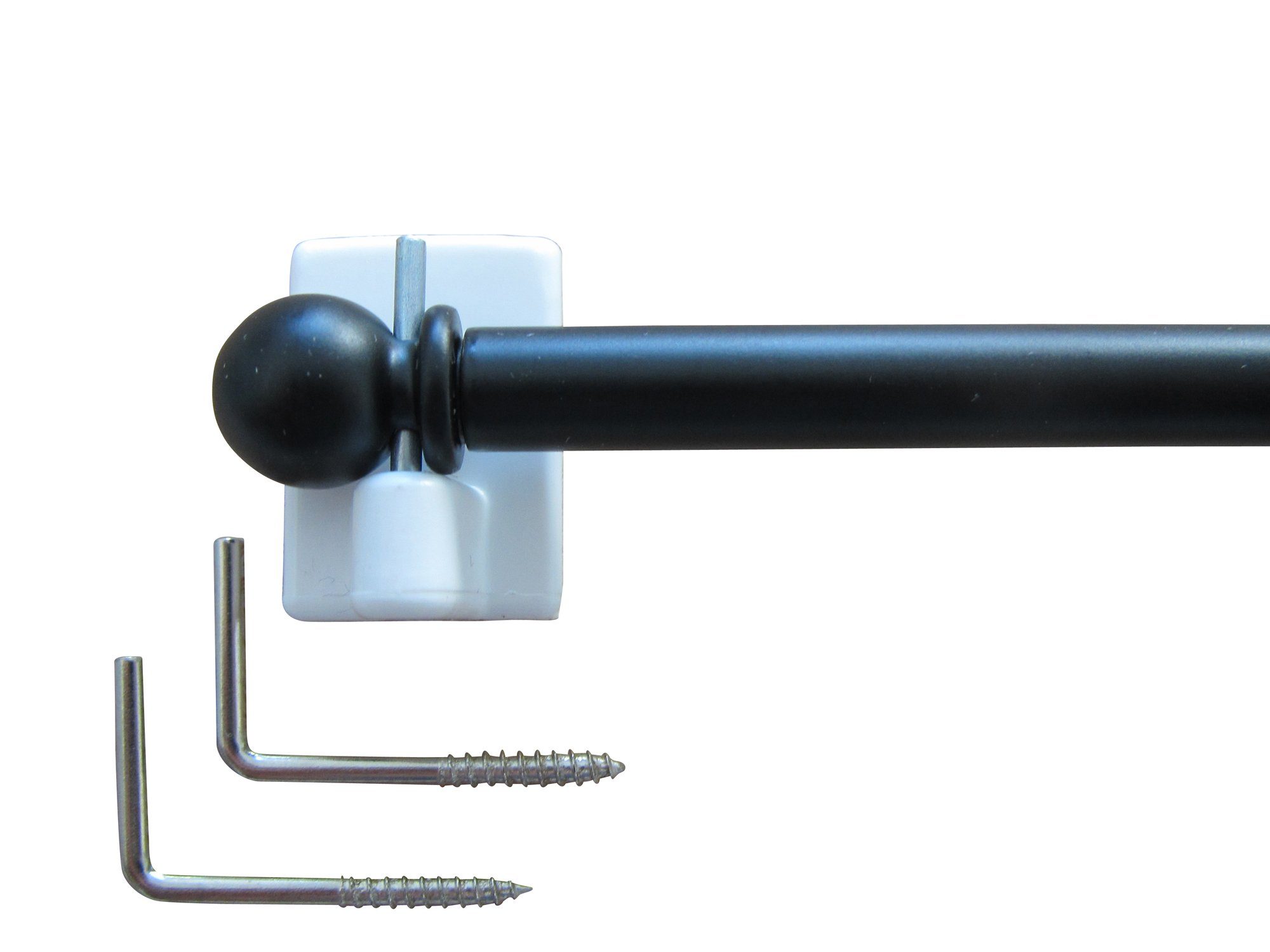 Beschreibung | 1 Hochwertige Vitragenstange Ø 8 mm , Caféhausstange - mit 2 Klebehaken weiss, und 2 Vitragenstangen Haken - Farbe: schwarz – Длина 30-40 cm, 40-60 cm, 60-90 cm, 90-130 cm |