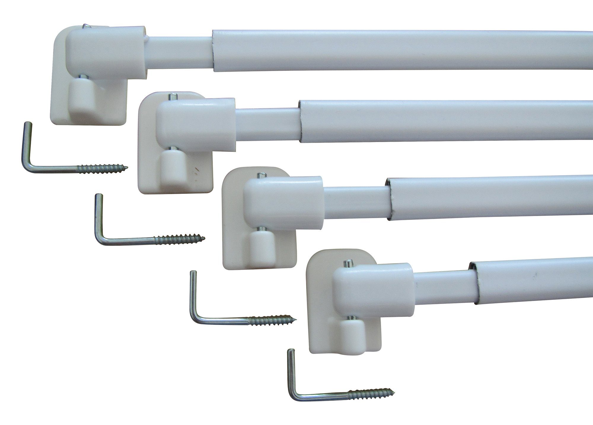 Beschreibung | 4 Hochwertige Vitragenstangen, Scheibenstangen, Gardinenstangen, Caféhausstangen - Metall mit Kunststoff umwickelt – mit 8 Klebehaken und 8 Vitragenstangen Haken - Farbe: weiß Длина: 30 - 50 cm, 40 – 65 cm, 50 - 80 cm, 60 - 100 cm, 80 - 140 cm, 100 - 160 cm |