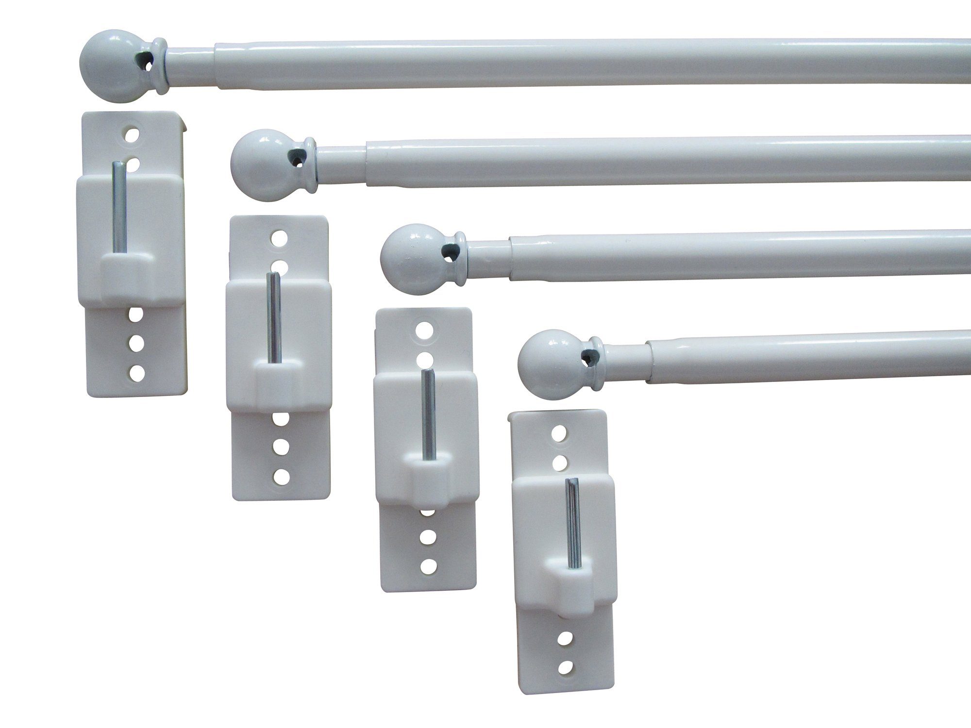 Beschreibung | 4 Vitragenstange Silvio - 8 Klebehaken verstellbar / Winkelklebehaken / weiß - Длина: 30 - 50 cm, 55 - 90 cm, 80 - 100 cm |