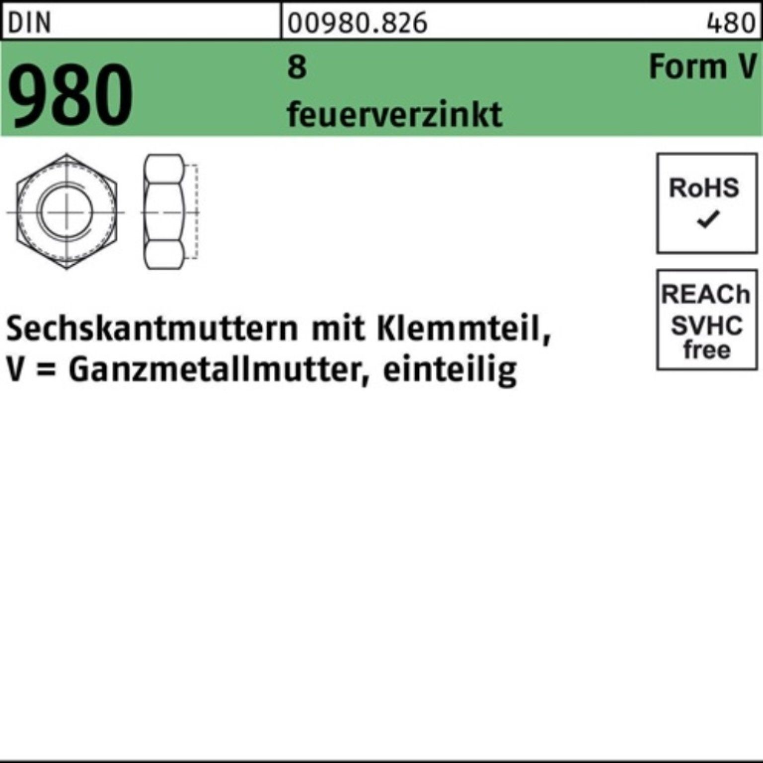 Muttern 100er Pack 009808260200000 Sechskantmutter DIN 980 m.Klemmteil V M 20